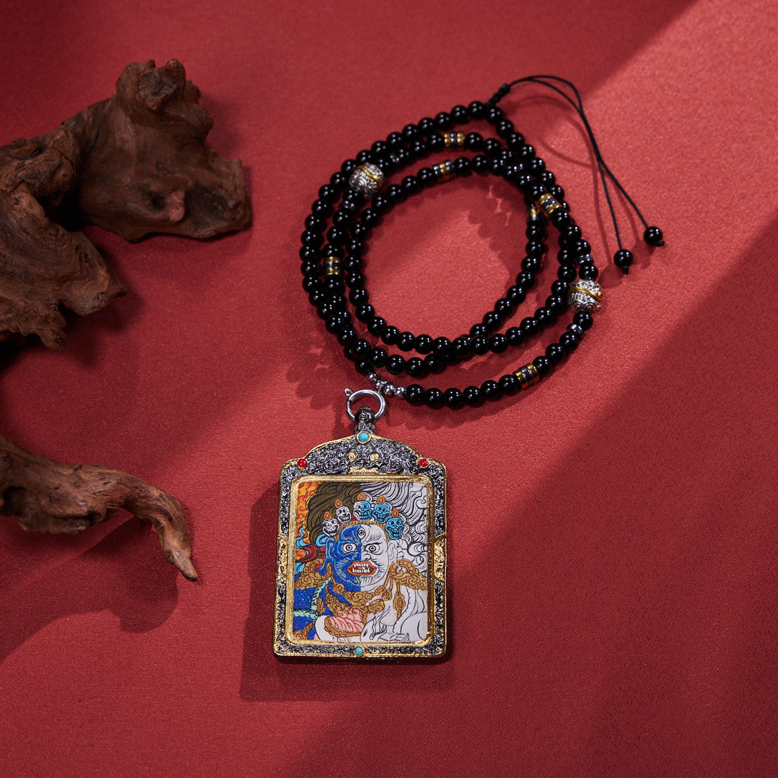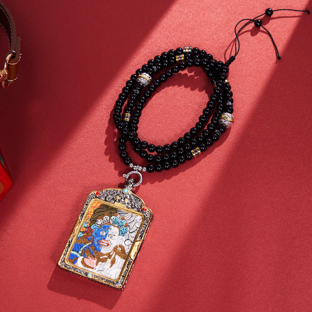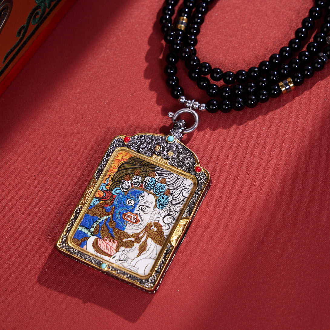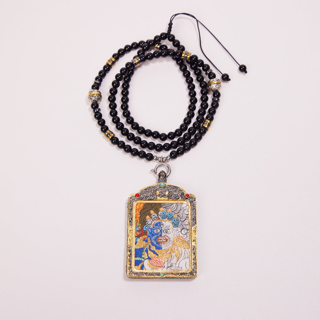 Between One Thought with Obsidian Thangka Pendant Necklace