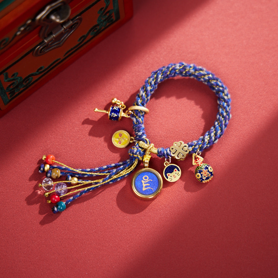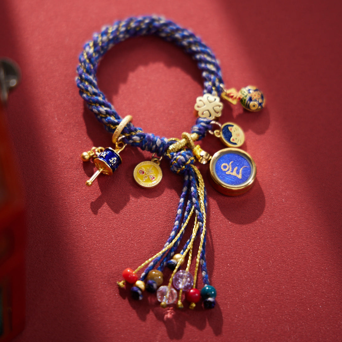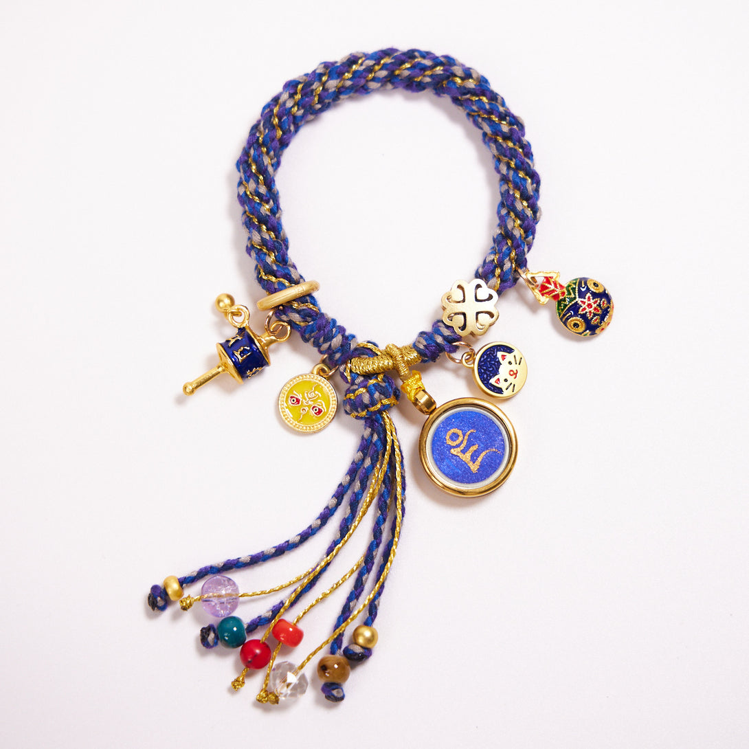 Buddha Eyes God of Wealth with Lapiz Lazuli and White Quartz Thangka Bracelet