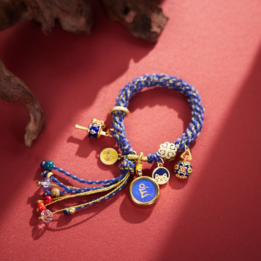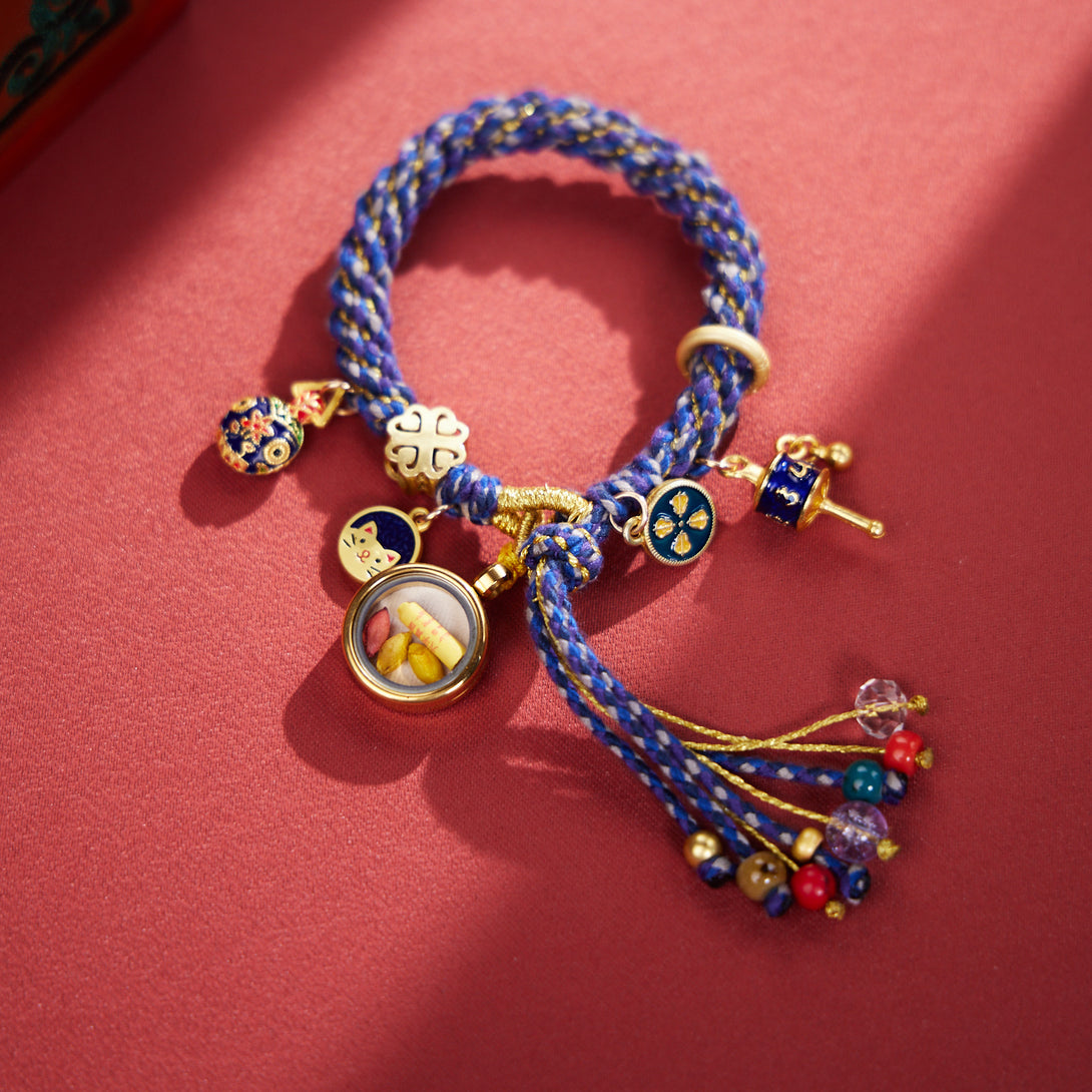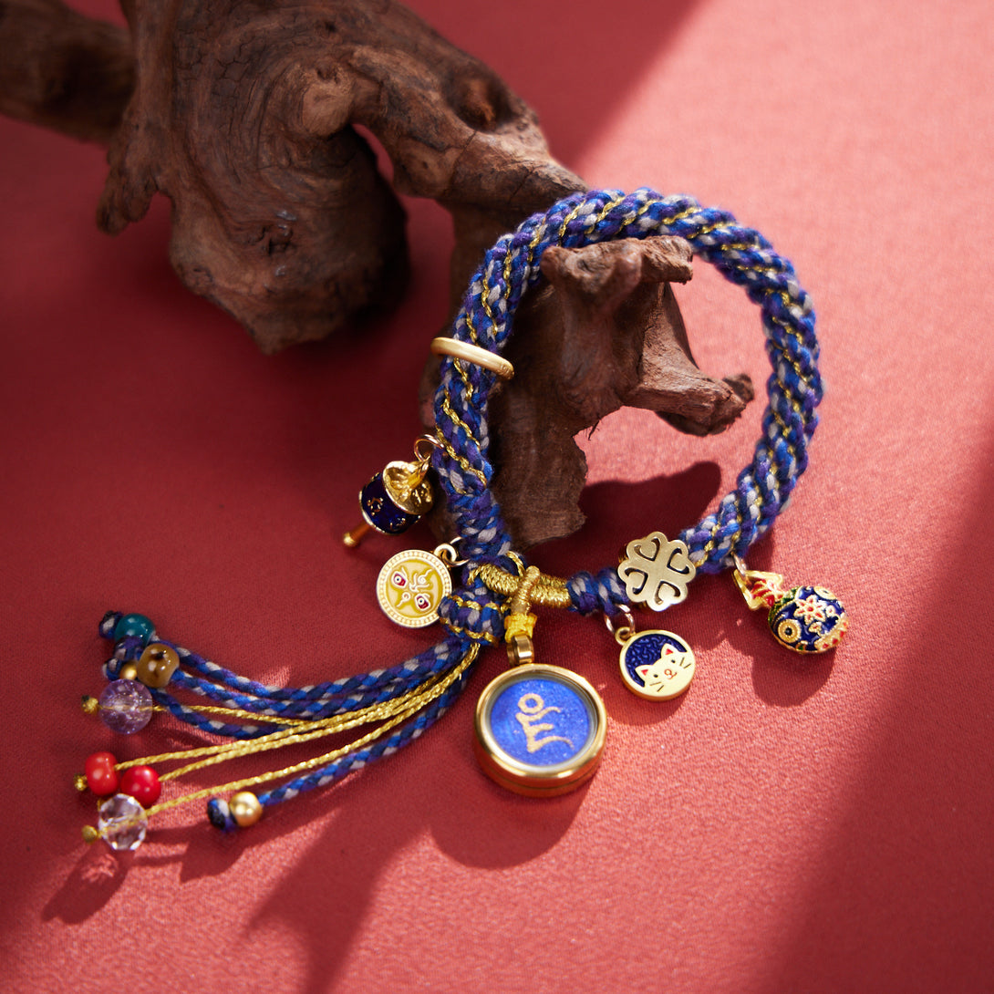 Buddha Eyes God of Wealth with Lapiz Lazuli and White Quartz Thangka Bracelet