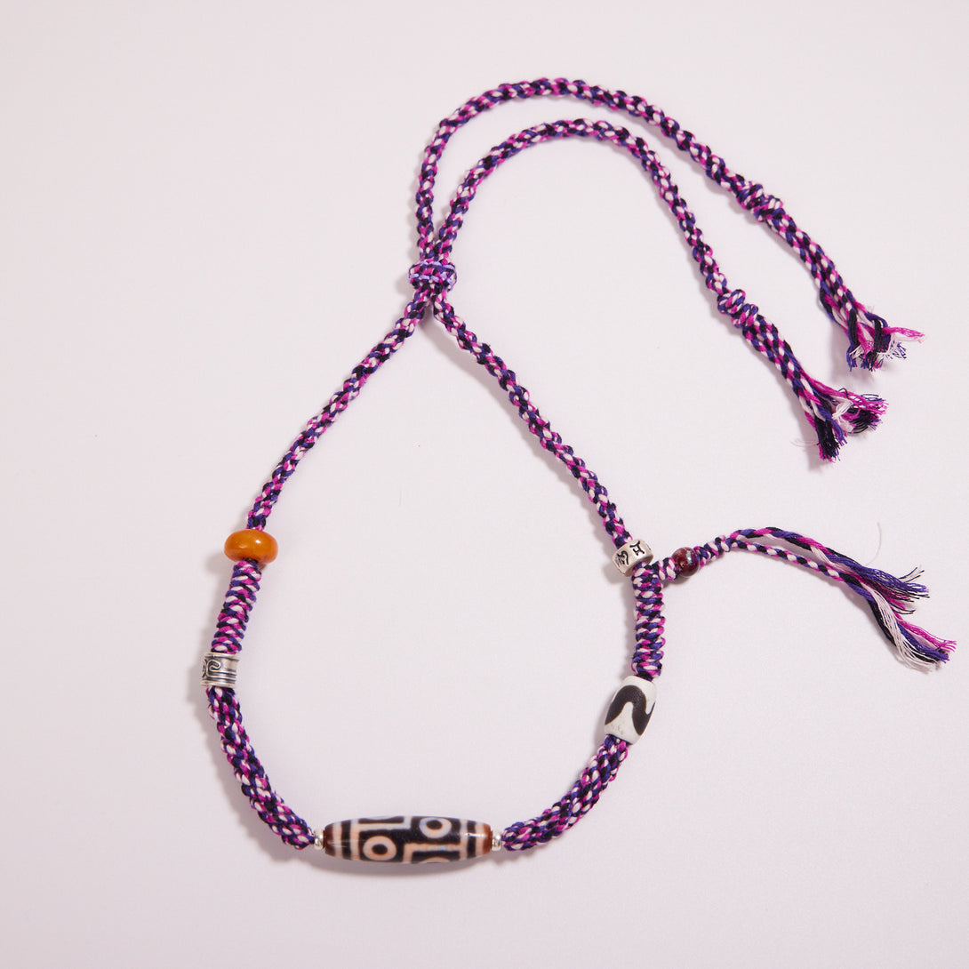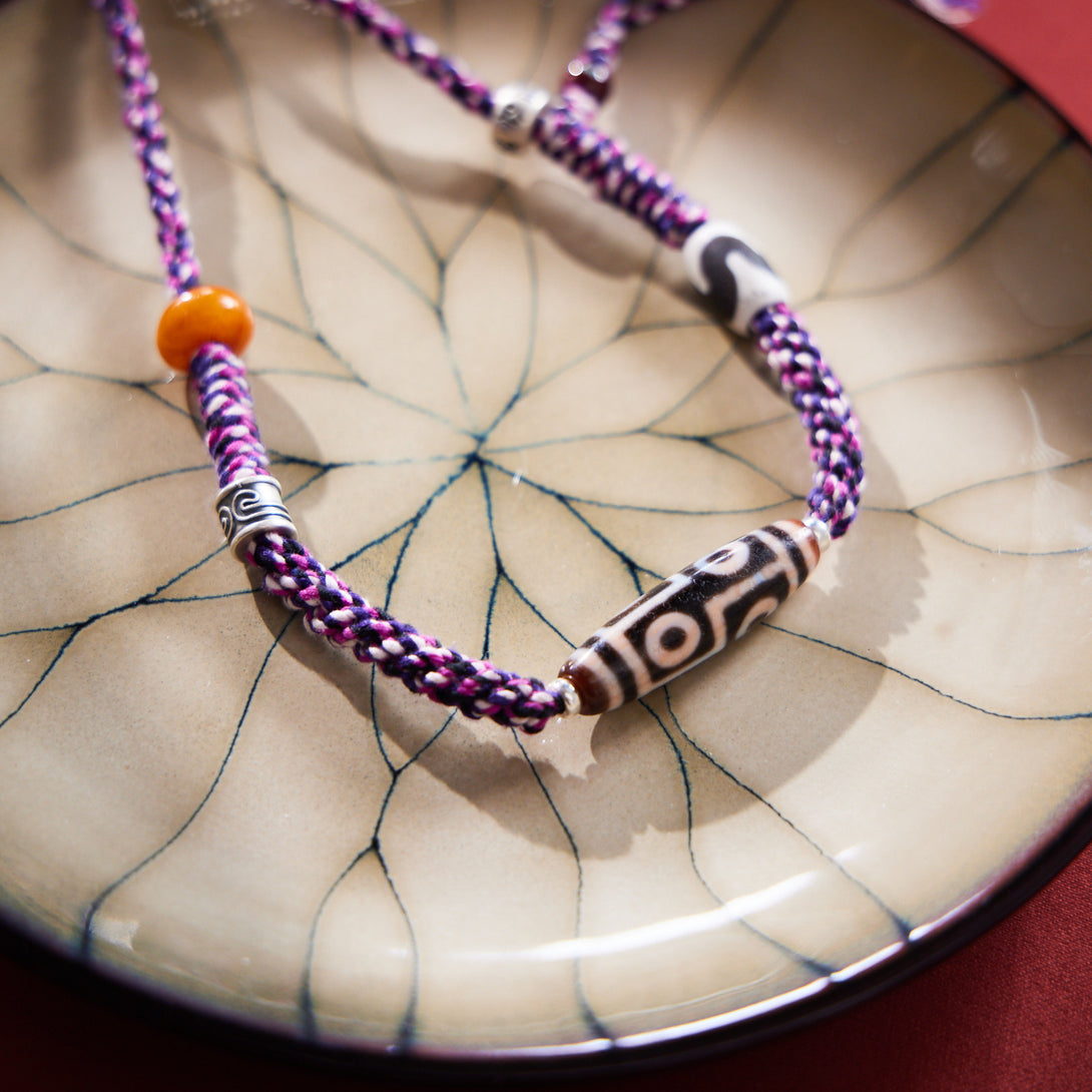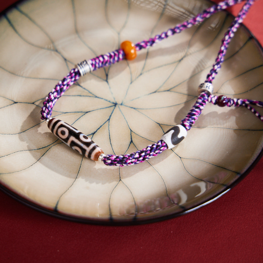 Dzi Bead Color-Woven Rope Blessing Necklace