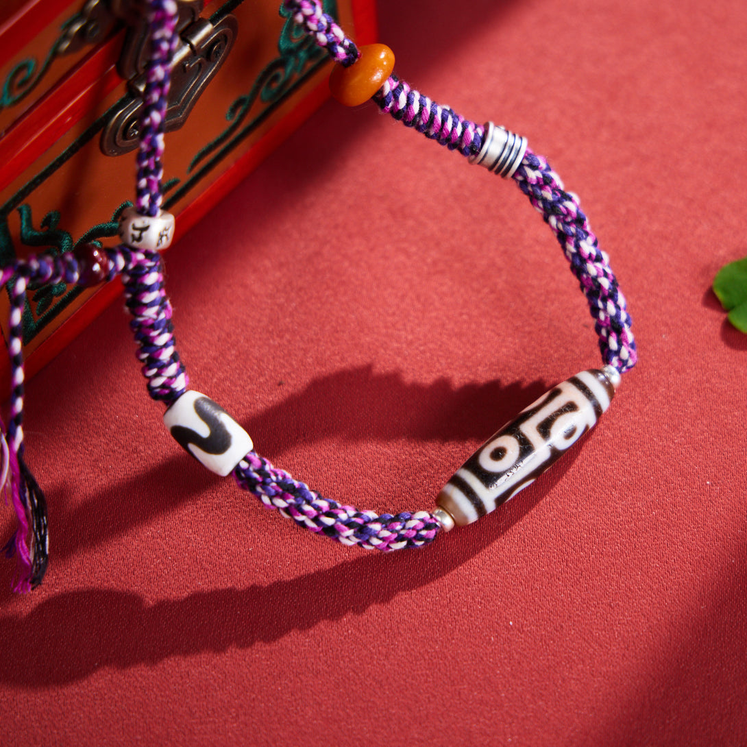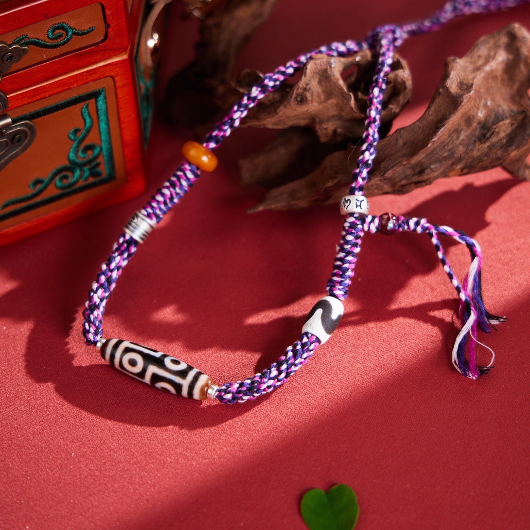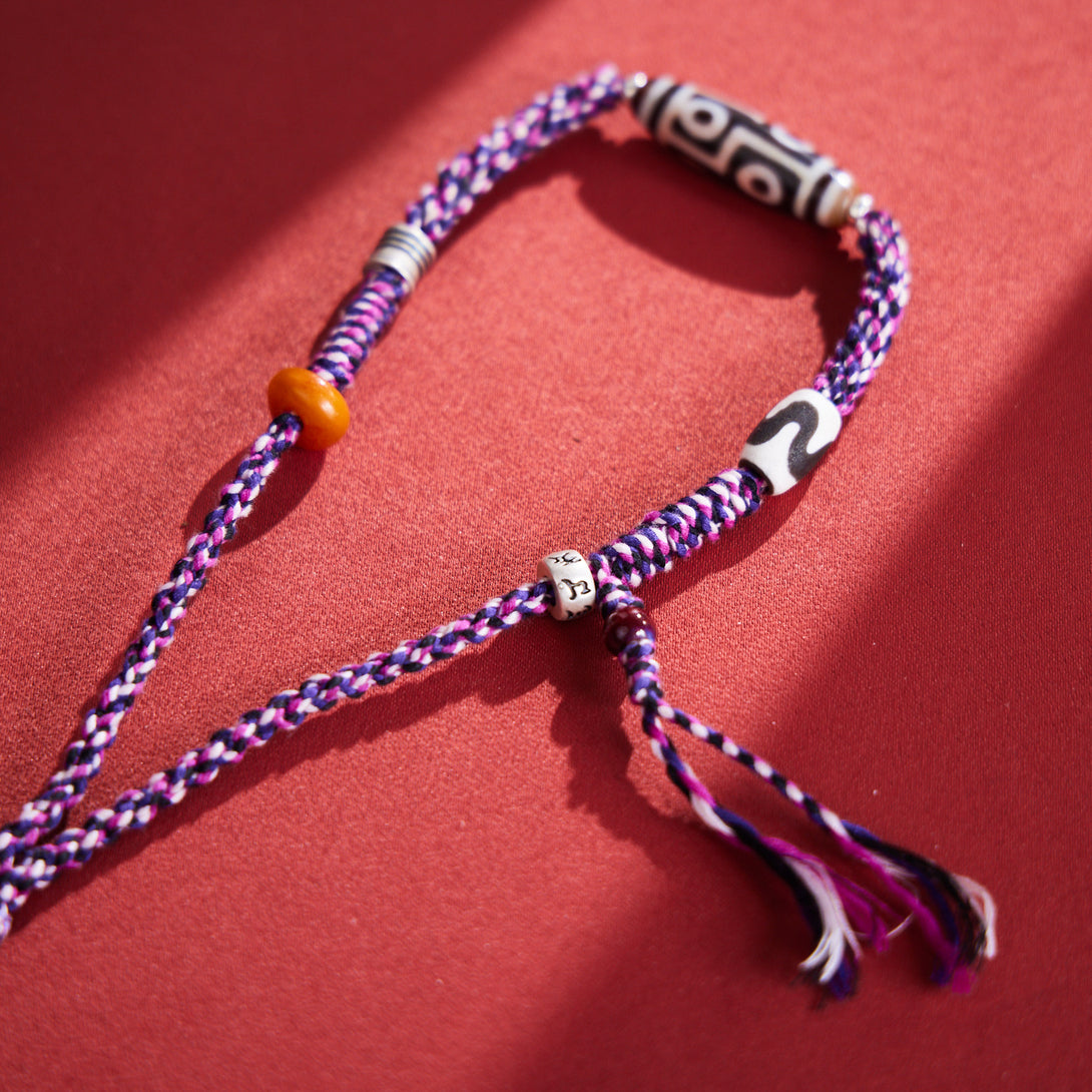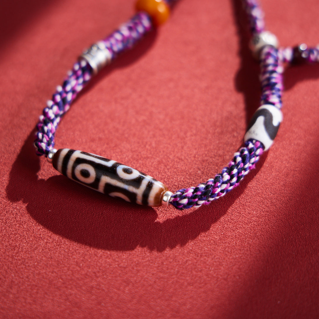 Dzi Bead Color-Woven Rope Blessing Necklace