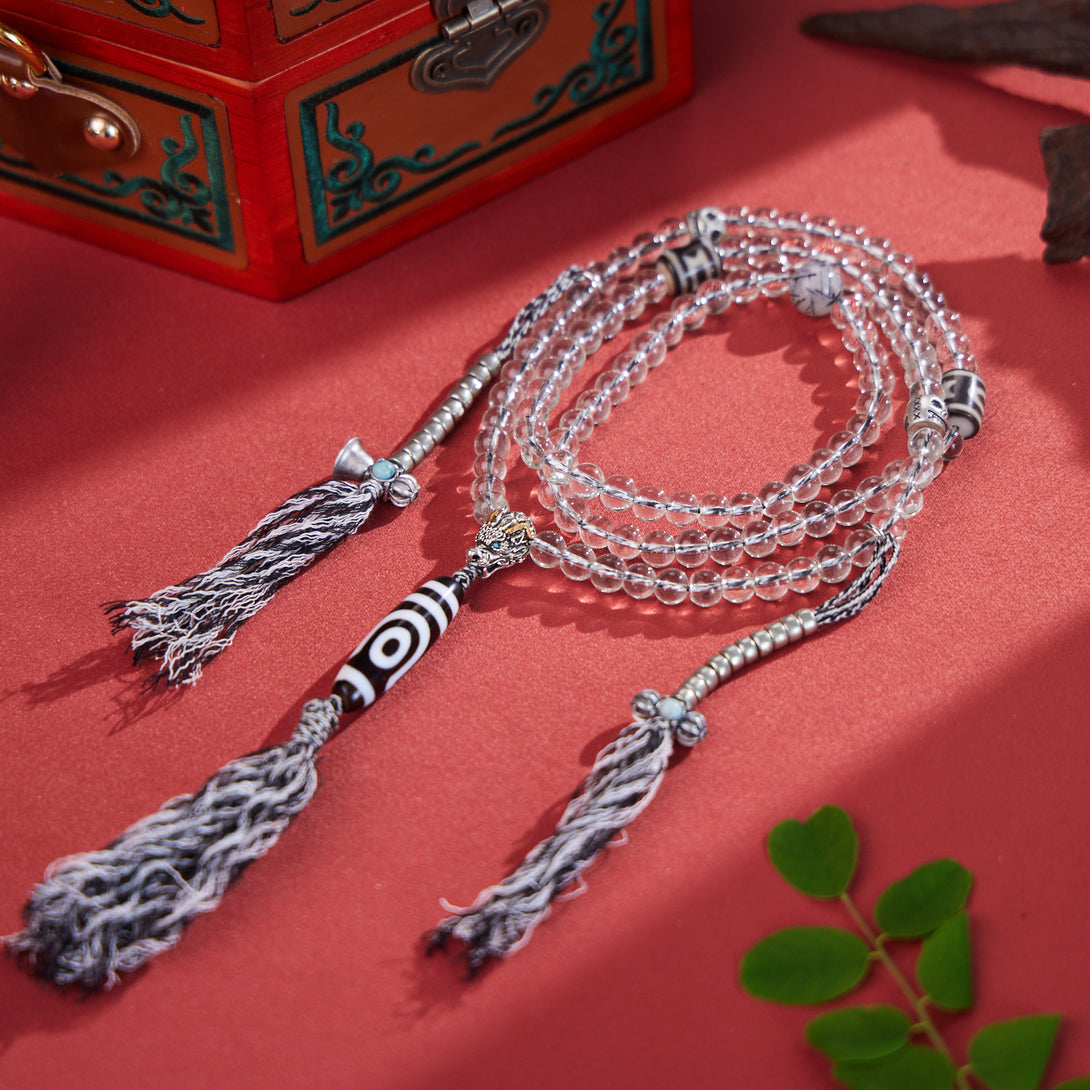 Dzi Bead and Multi Crystal Harmony Tibetan Necklace