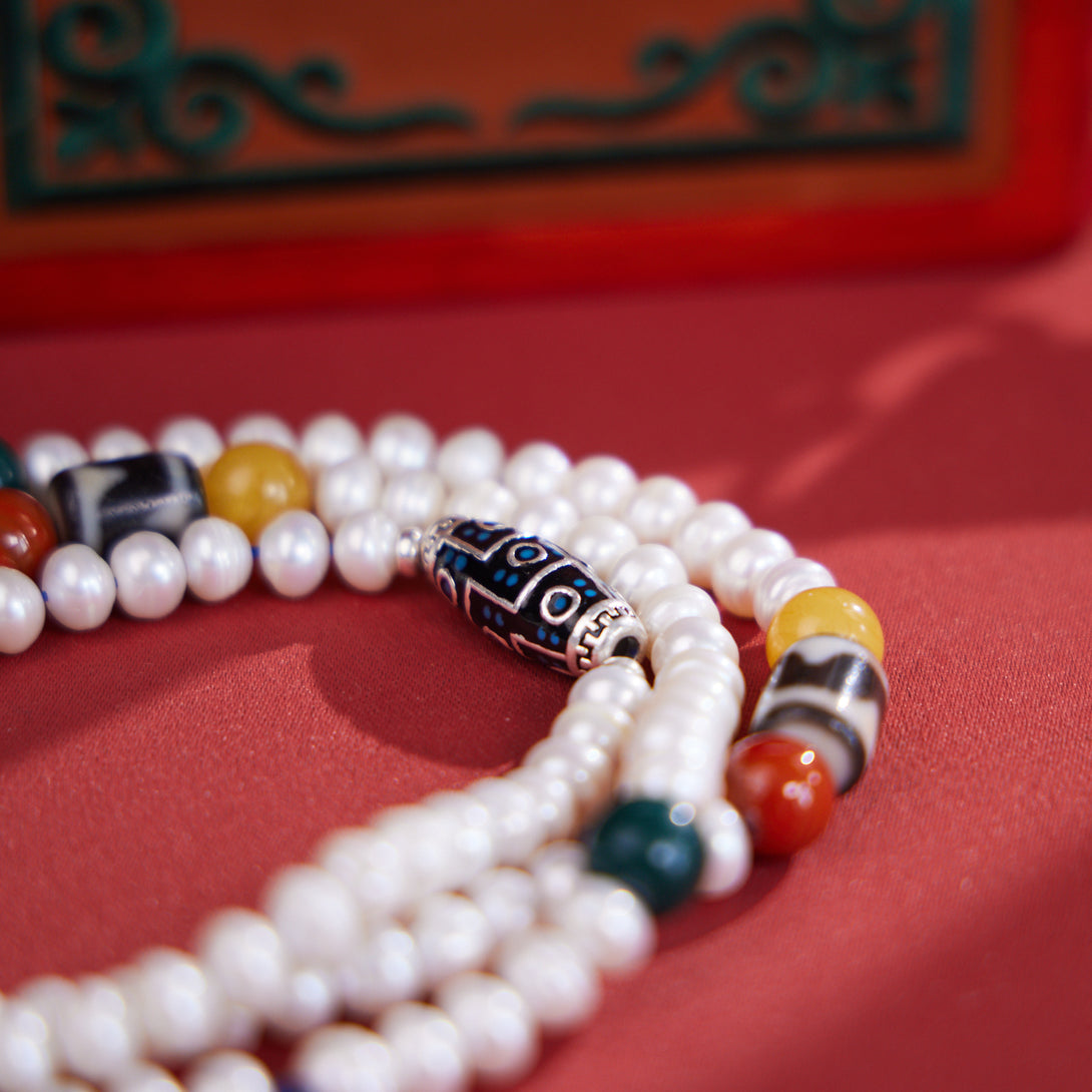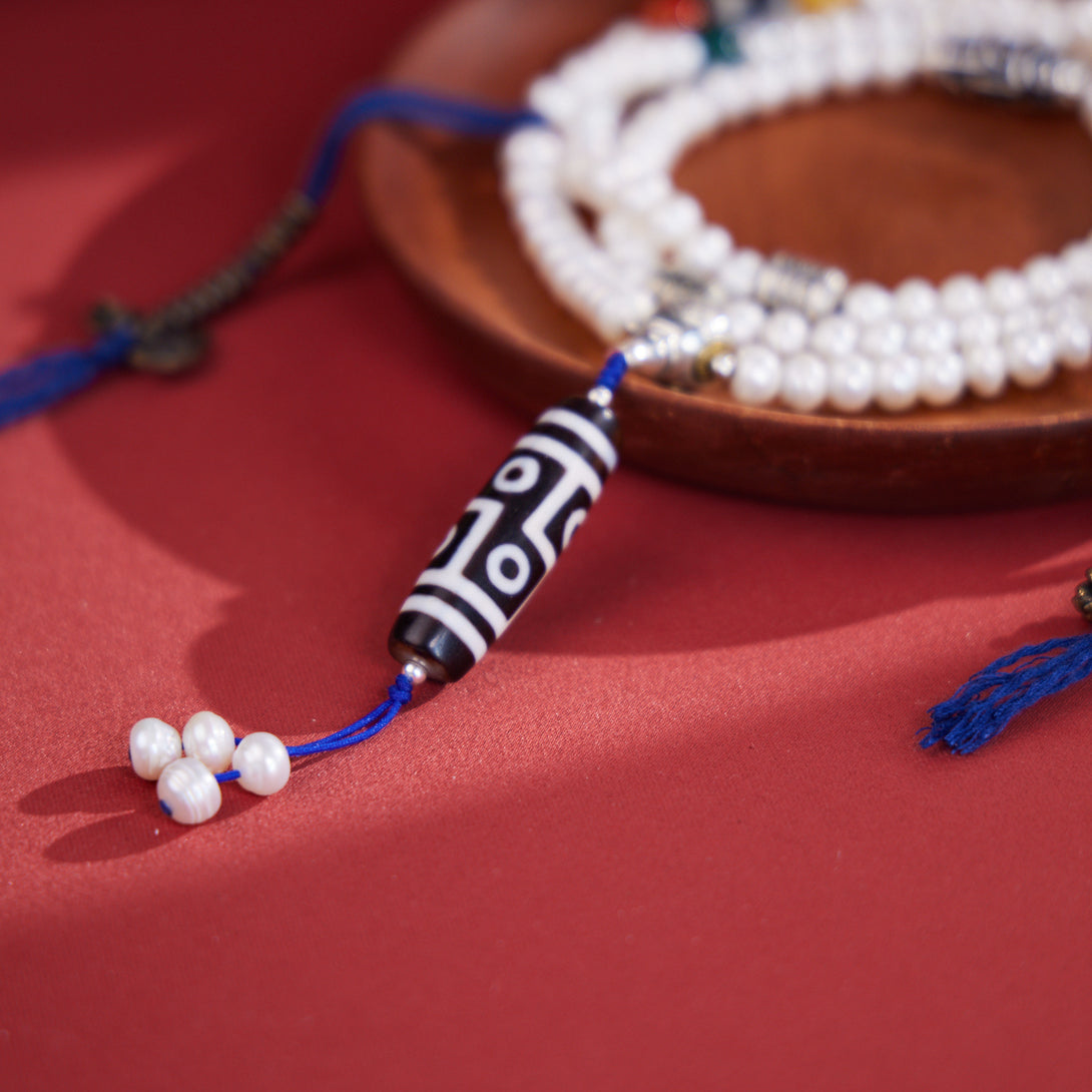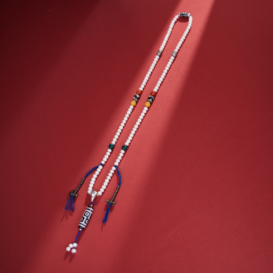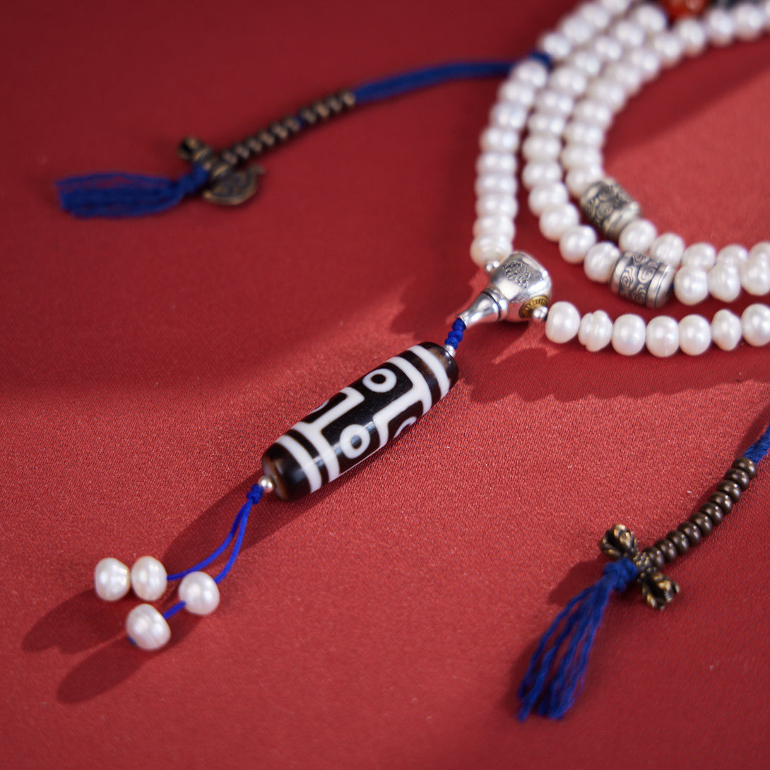 Dzi Bead and Pearl Elegance Tibetan Necklace