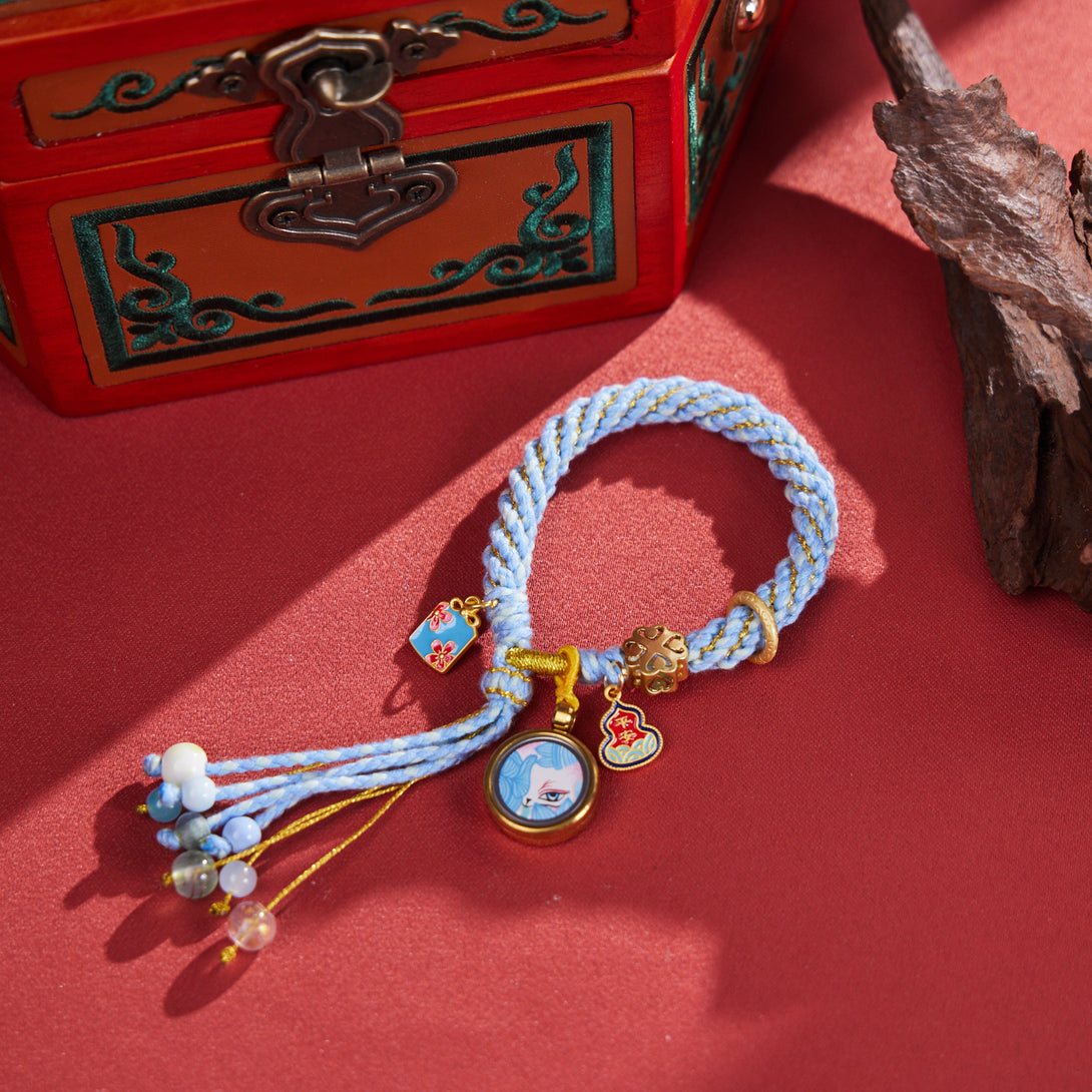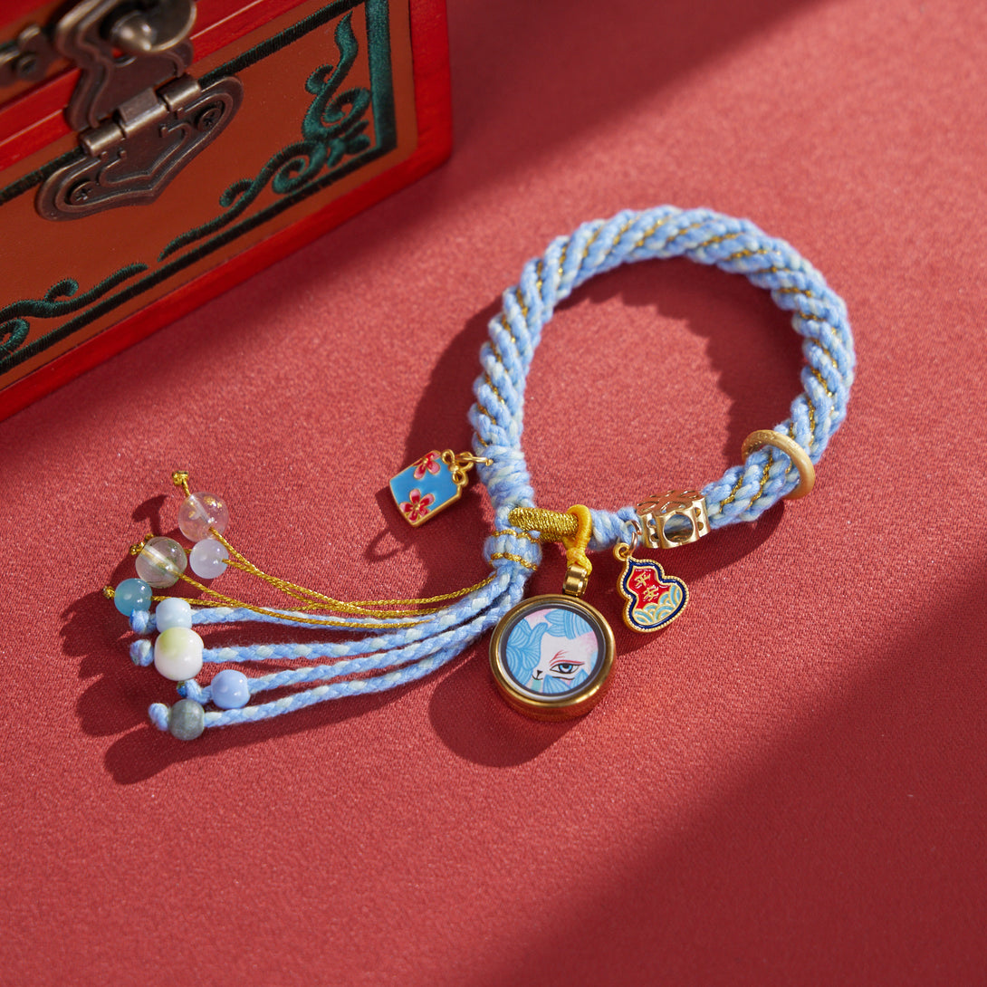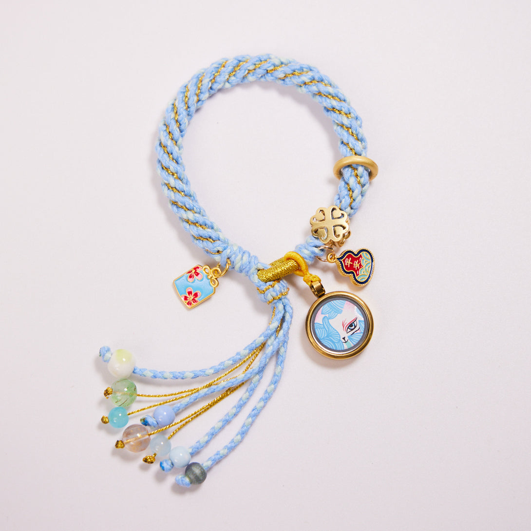 Fox Spirit with Azure Blue Braided Cord Thangka Bracelet