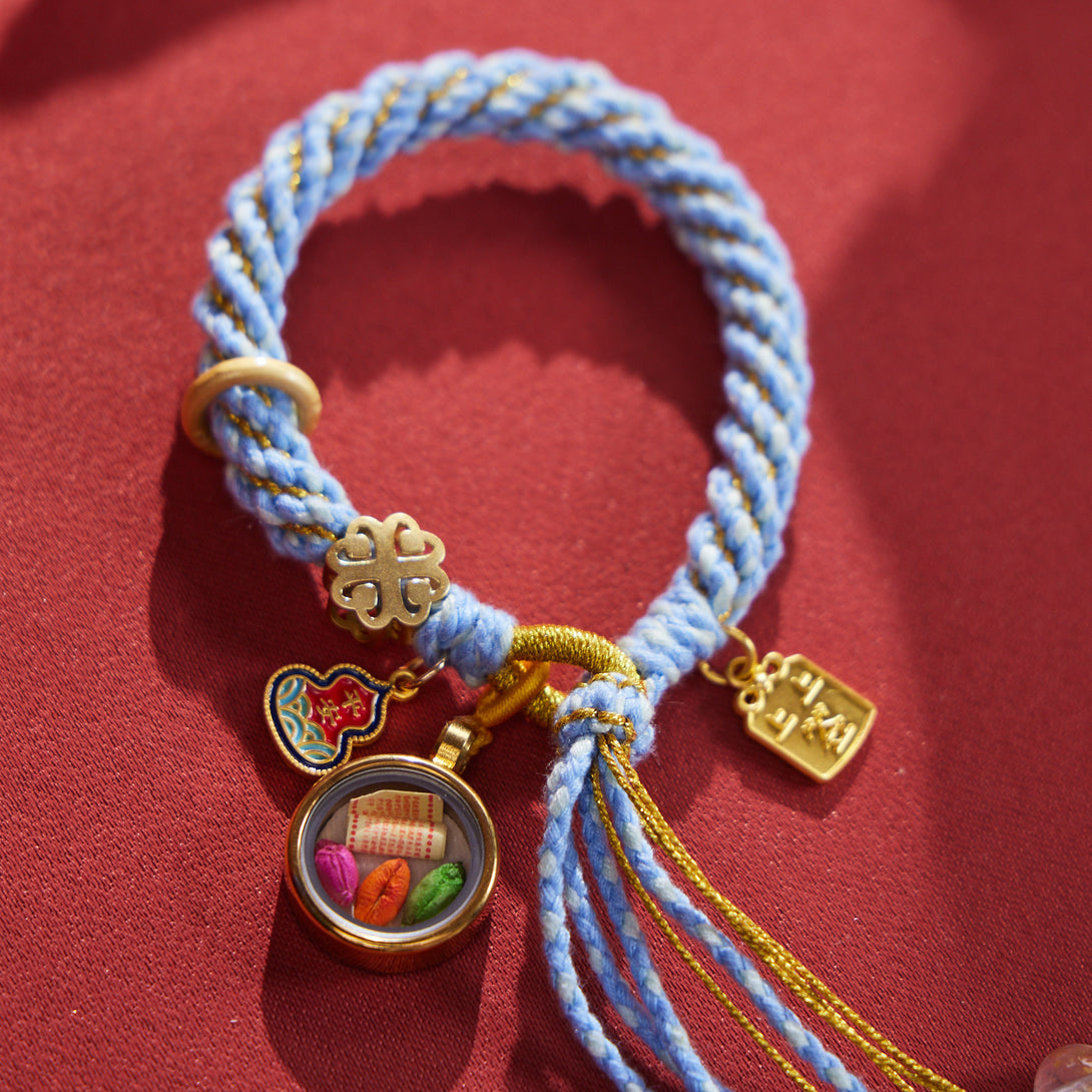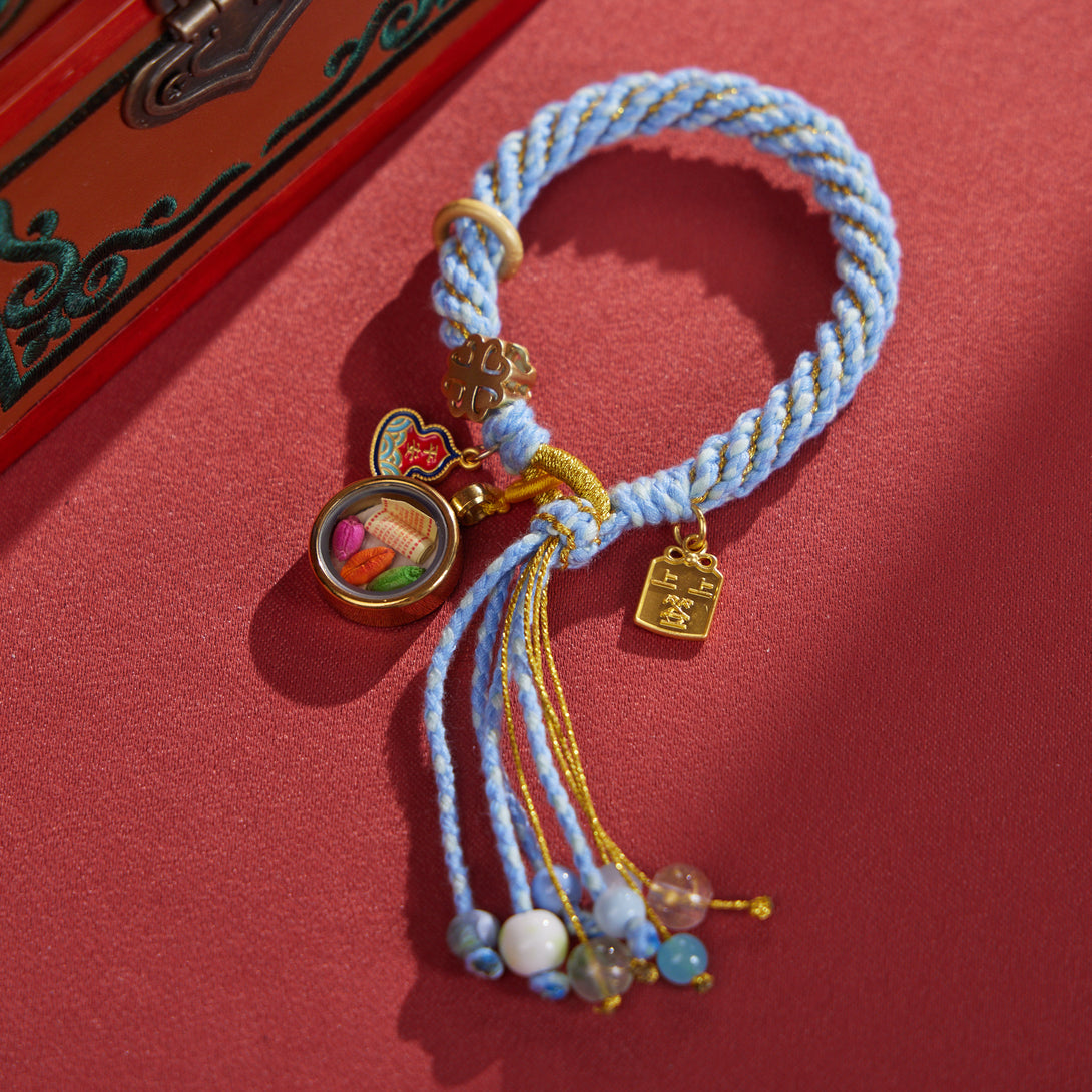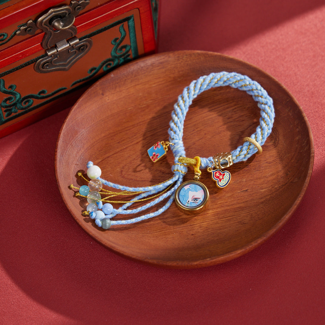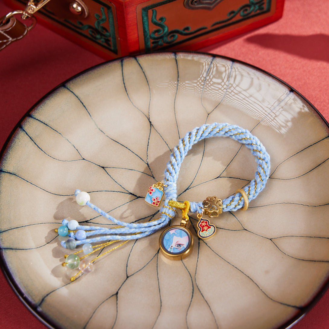 Fox Spirit with Azure Blue Braided Cord Thangka Bracelet
