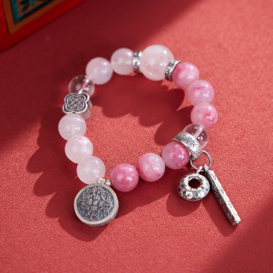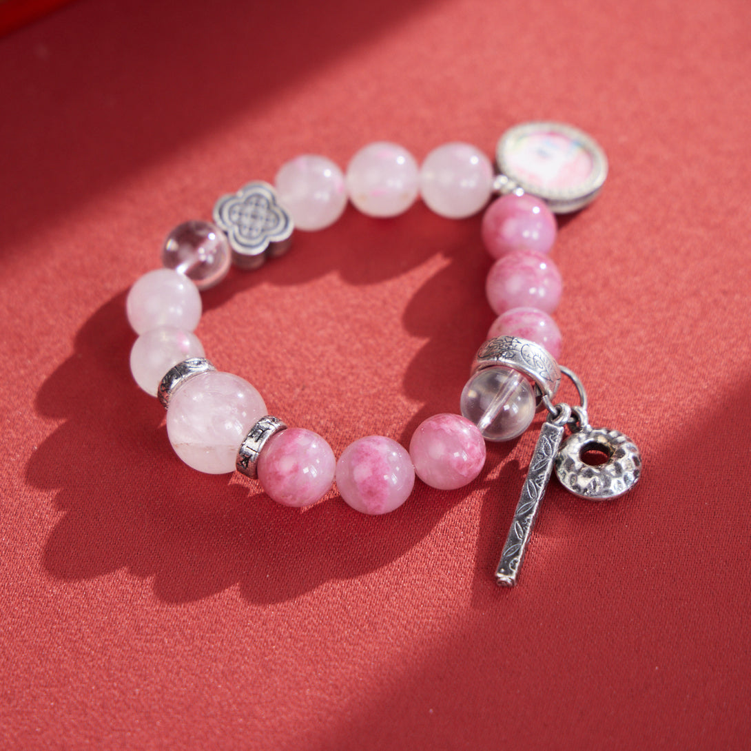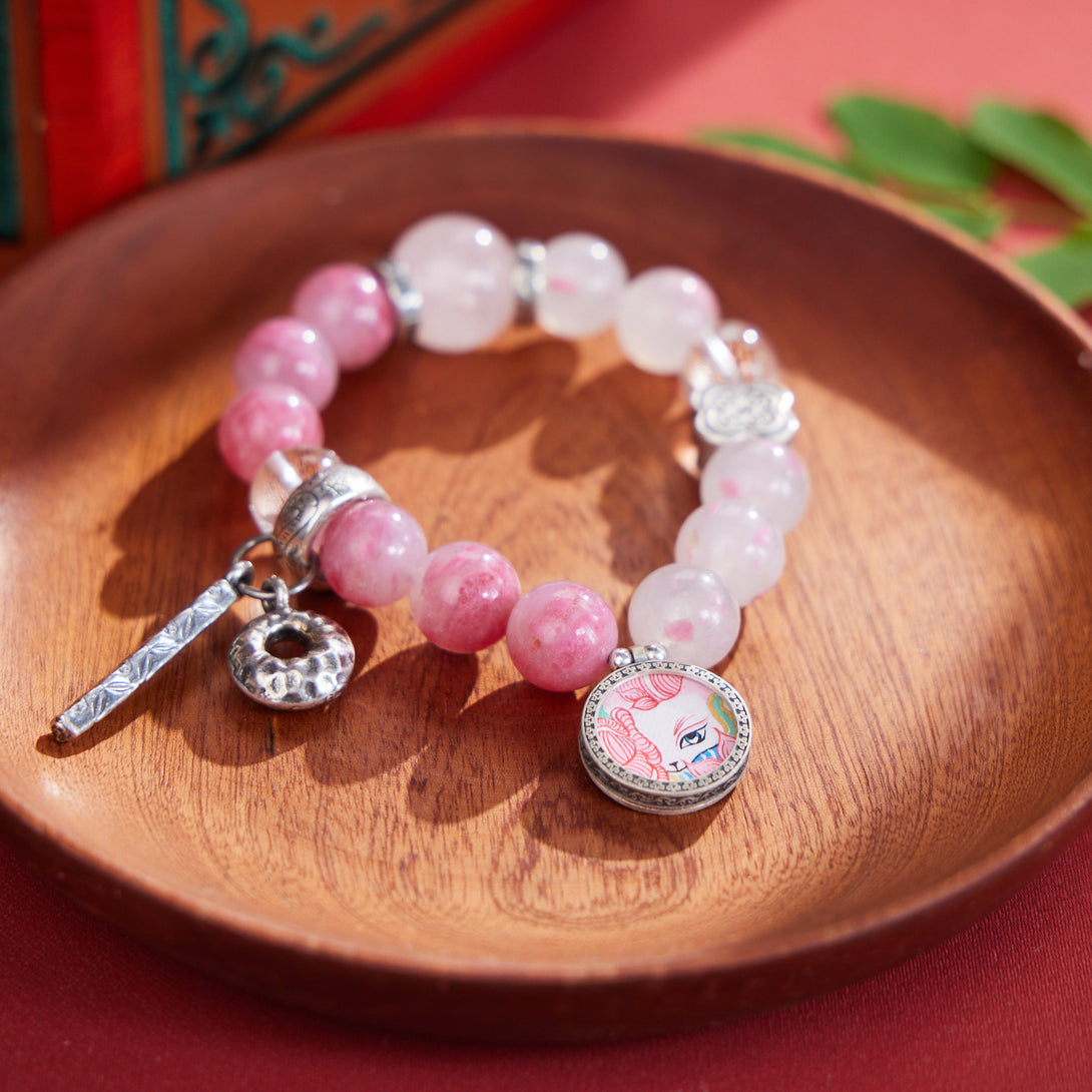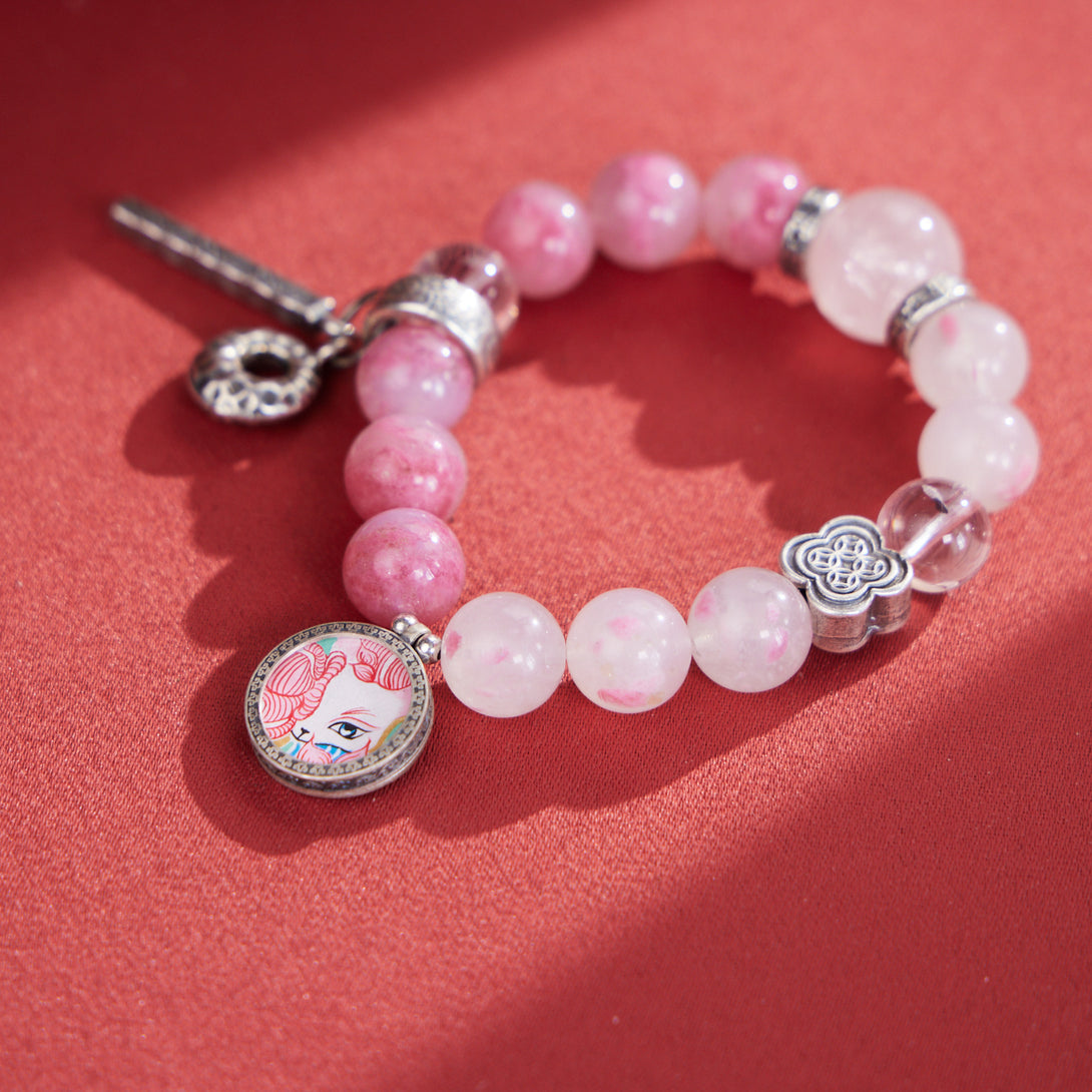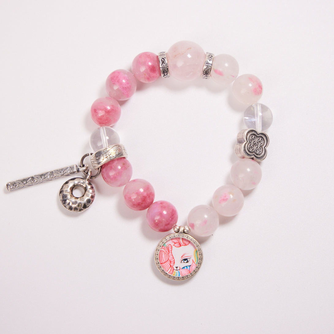 Little Fox Spirit with Rose & White Quartz Crystal Thangka Bracelet