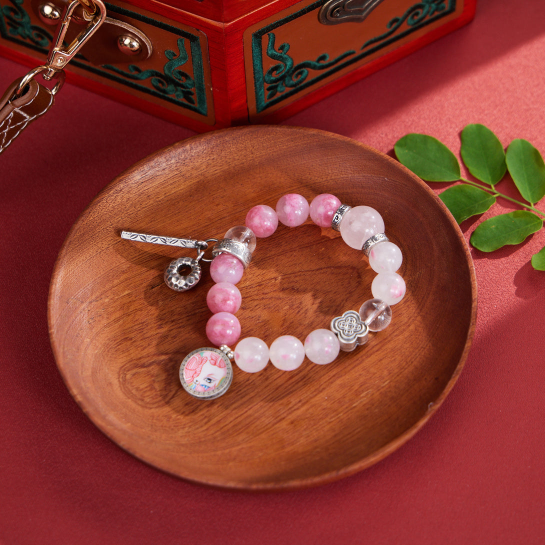 Rose Quartz White Crystal Fox Fairy Harmony Bracelet