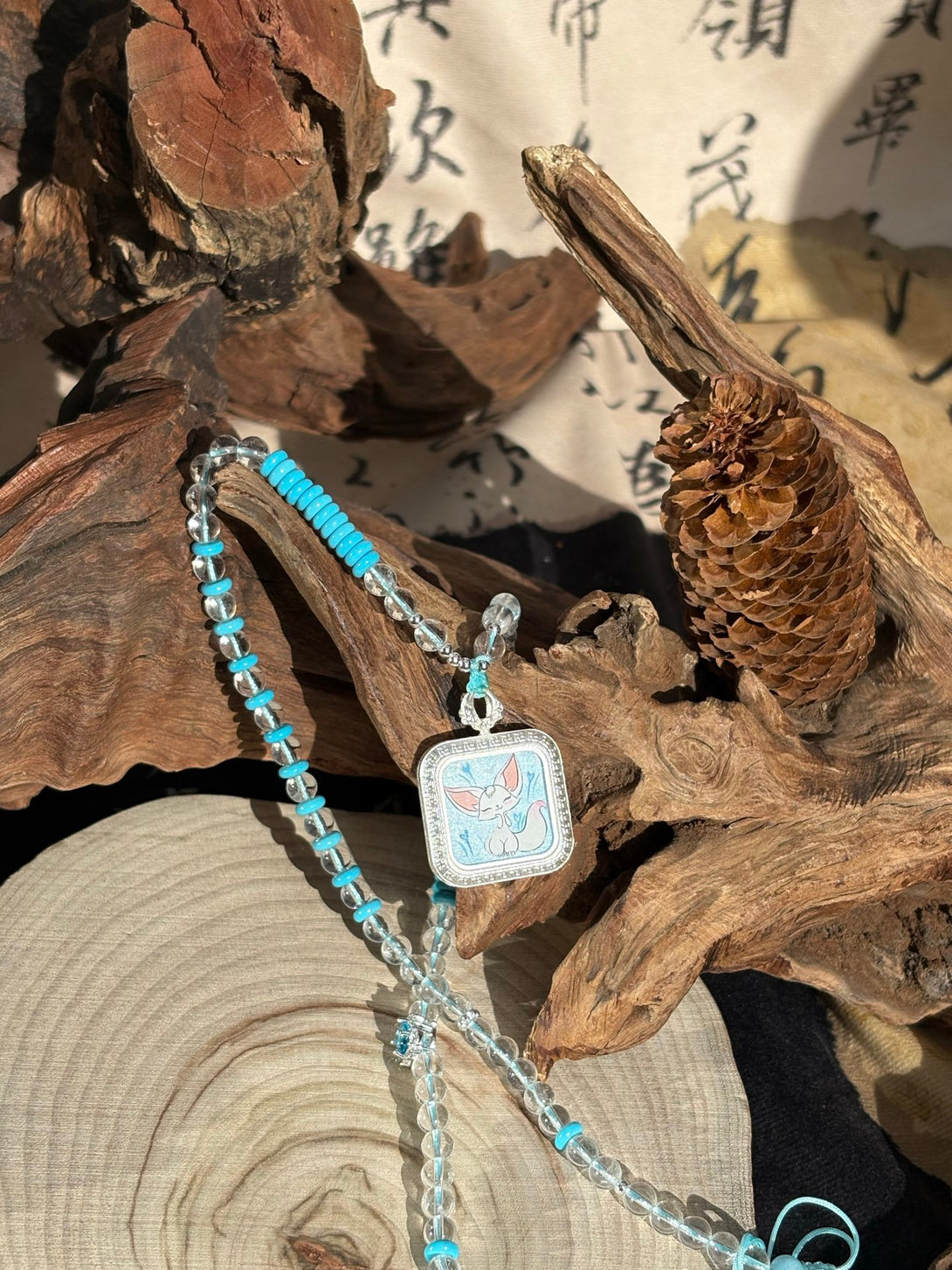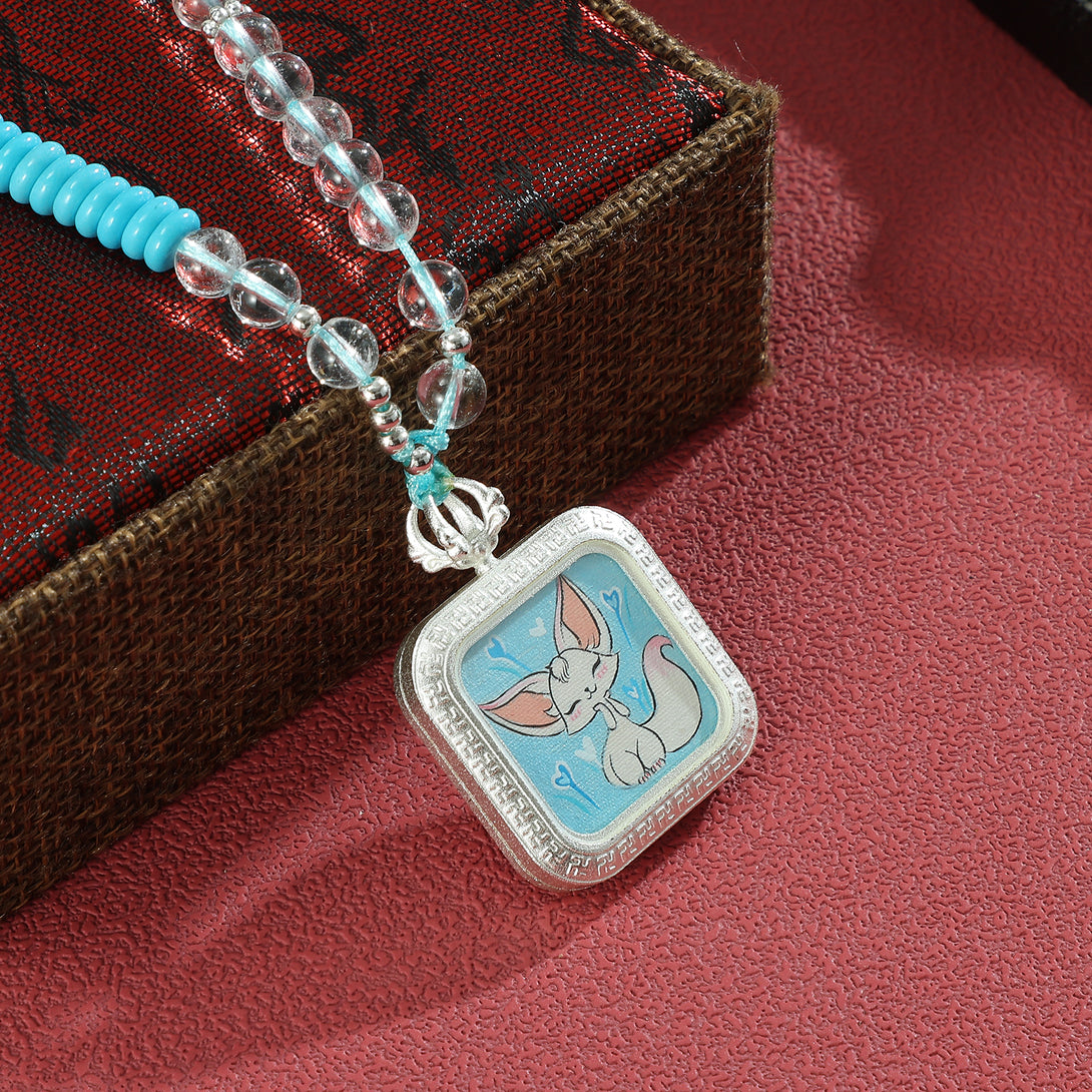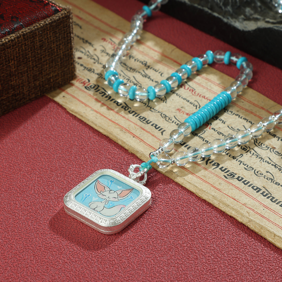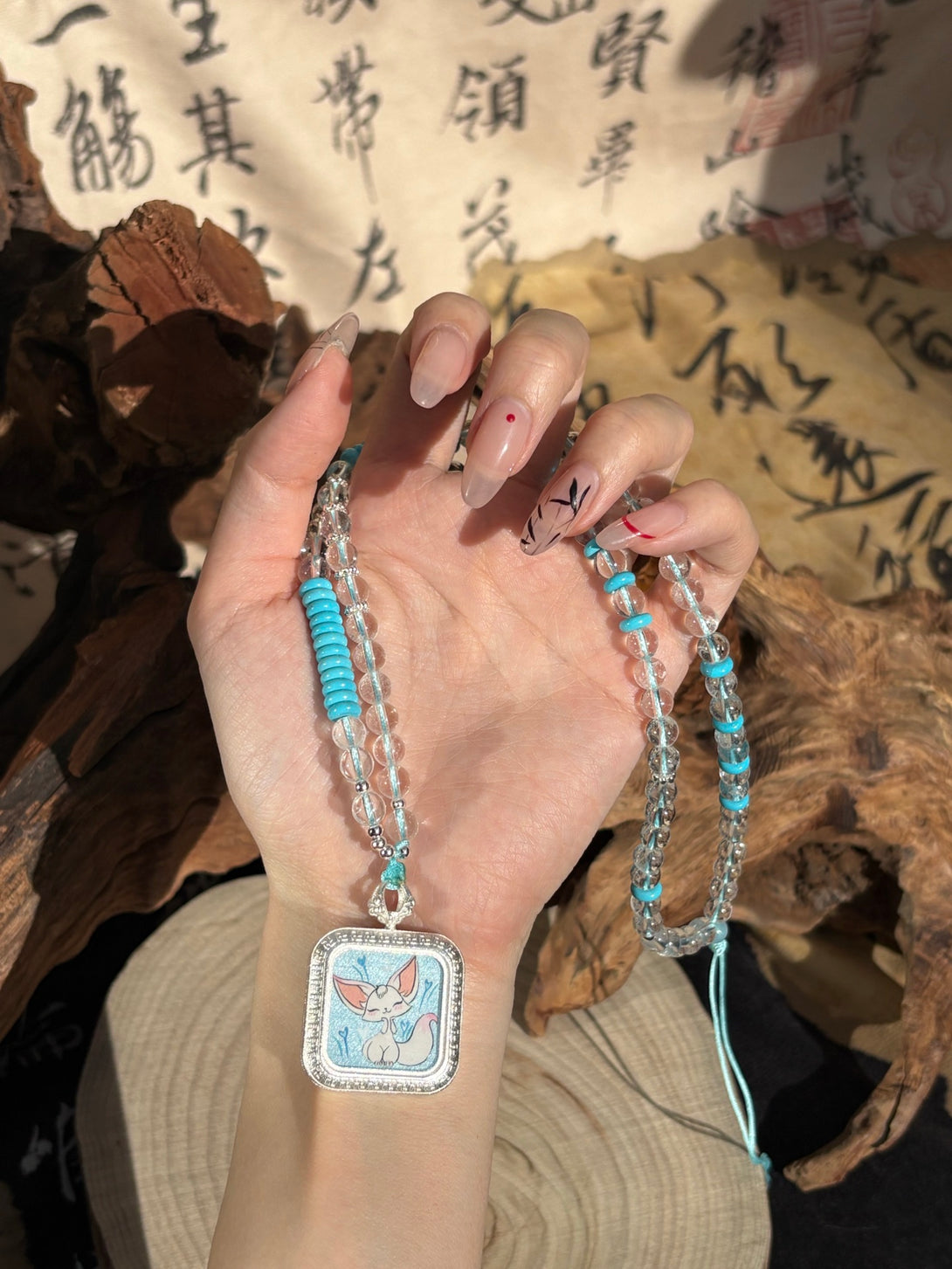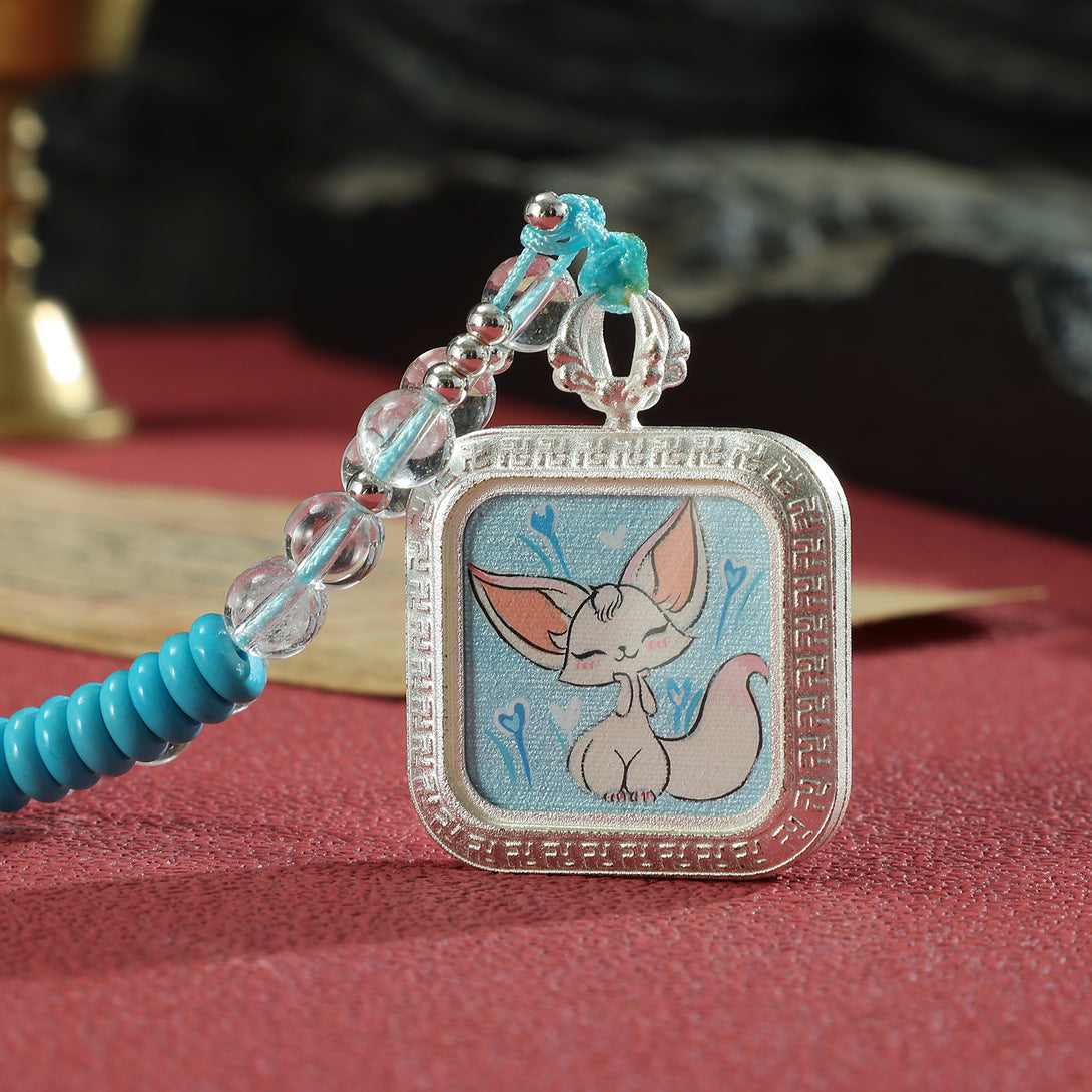 Little Fox Spirit Square Thangka – Crystal Necklace
