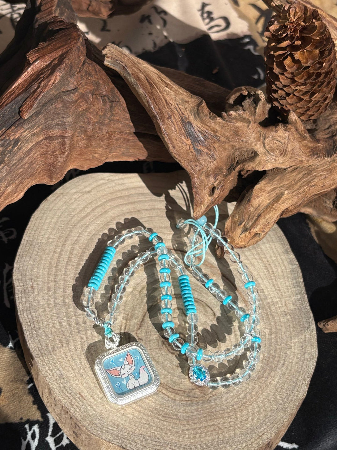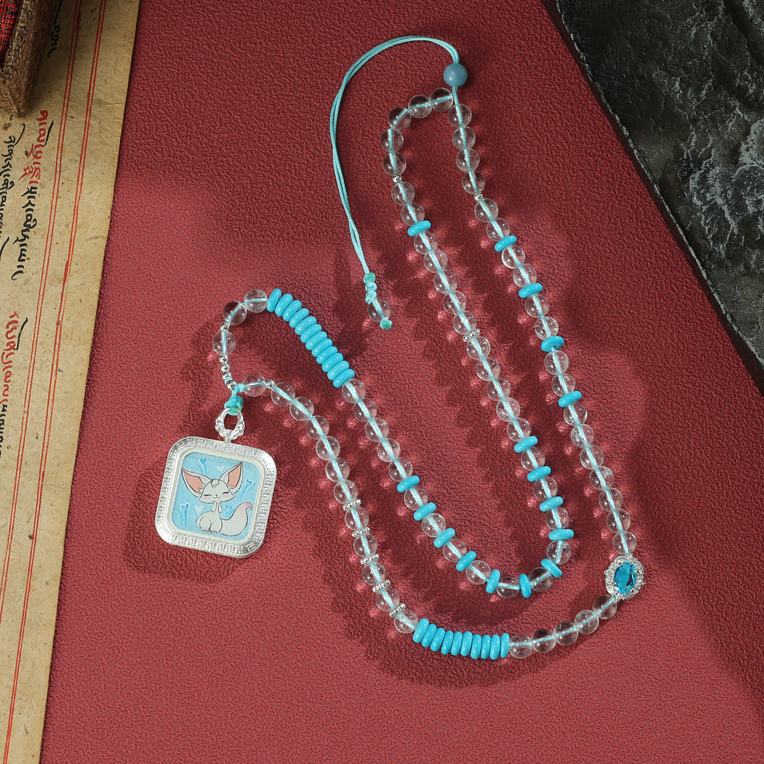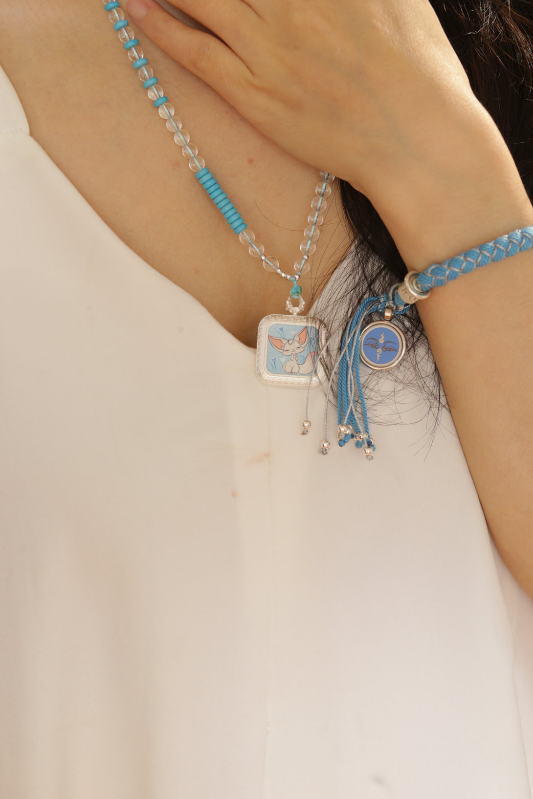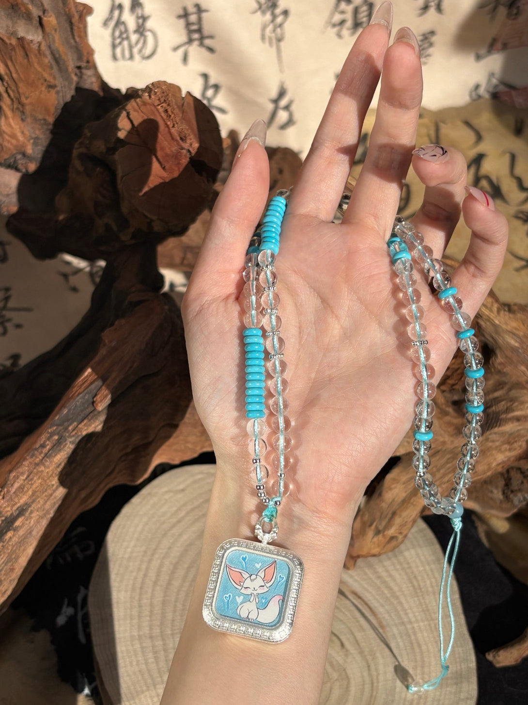 Little Fox Spirit Square Thangka – Crystal Necklace