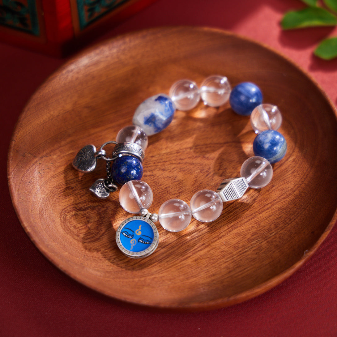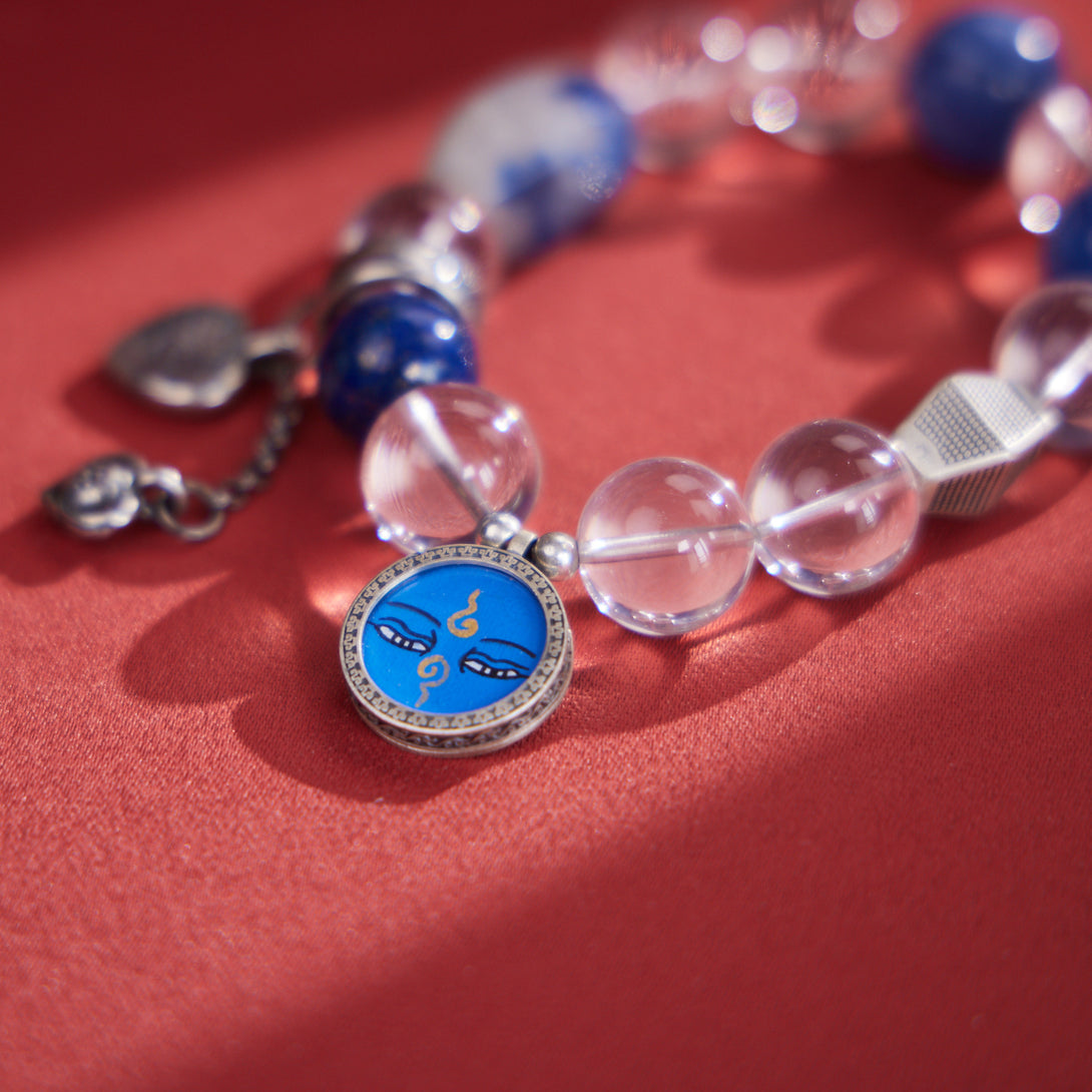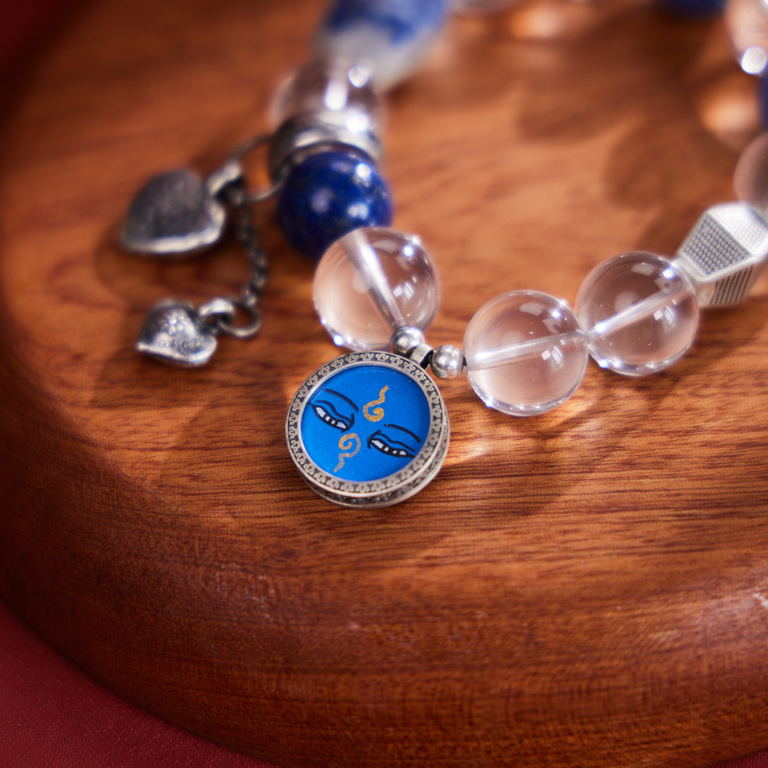 Medicine Buddha with Lapis Lazuli & Clear Quartz Crystal Thangka Bracelet
