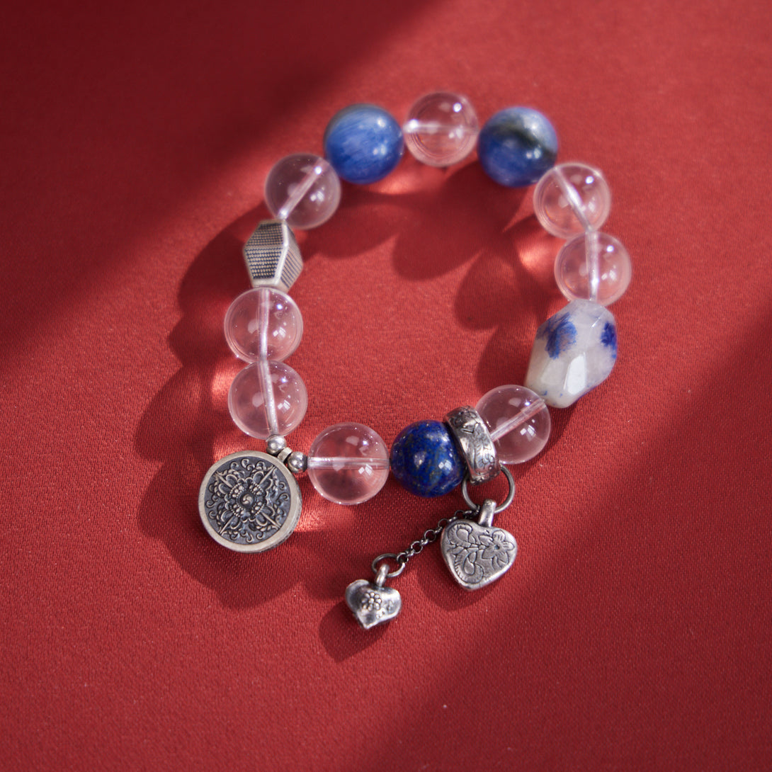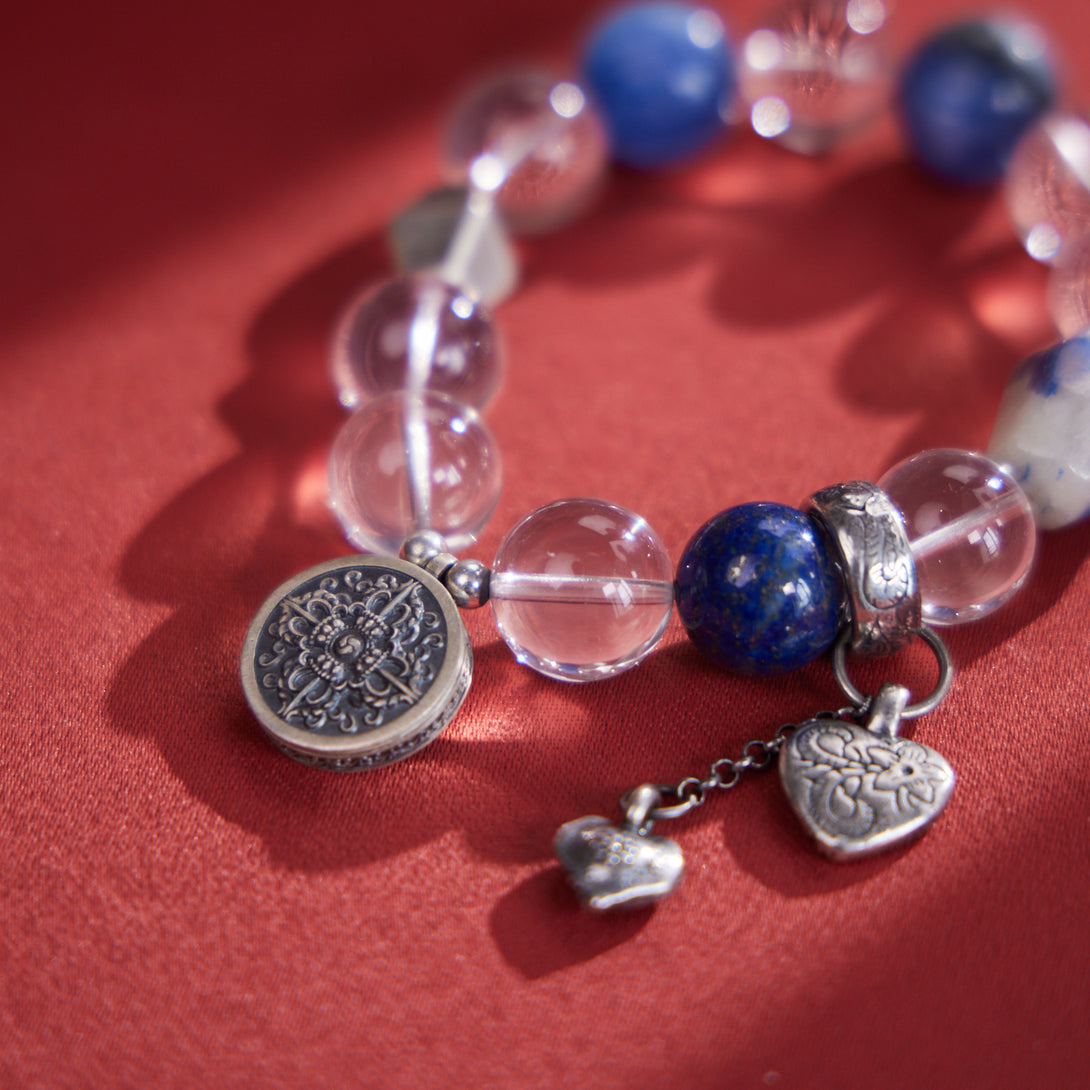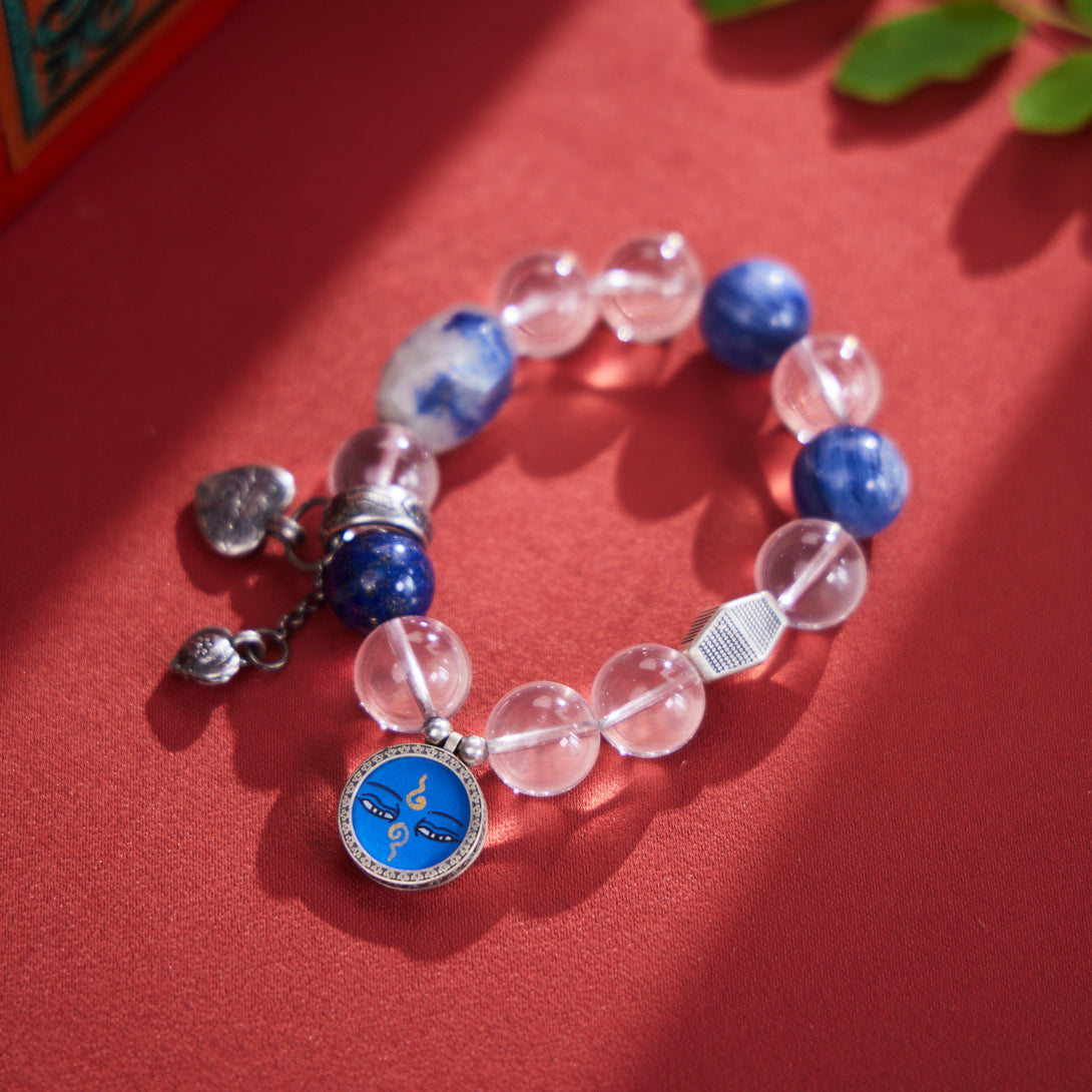 Medicine Buddha with Lapis Lazuli & Clear Quartz Crystal Thangka Bracelet