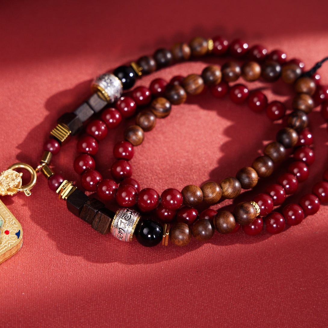 Hand-carved cinnabar beads (8–12mm) with rounded edges (symbolize "softened" obstacles); sandalwood beads polished to a matte finish |