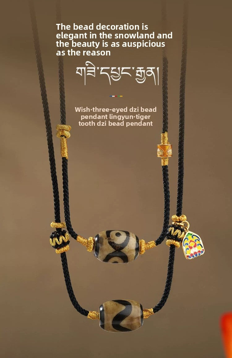 Tiger Tooth Three-Eye Dzi Tibetan Pendant Necklace
