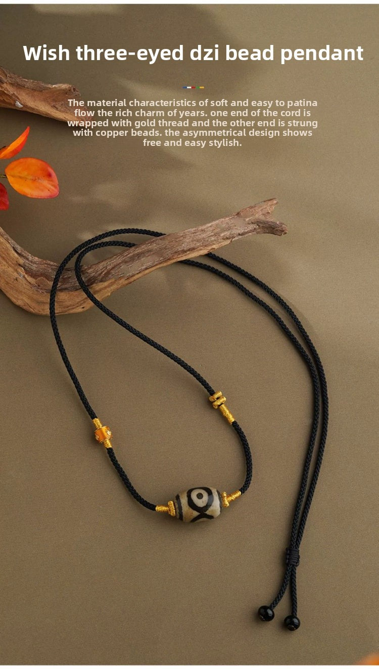Three-Eyed Dzi: Represents the Buddha’s body, speech, and mind; promotes wealth and wards off misfortune.
