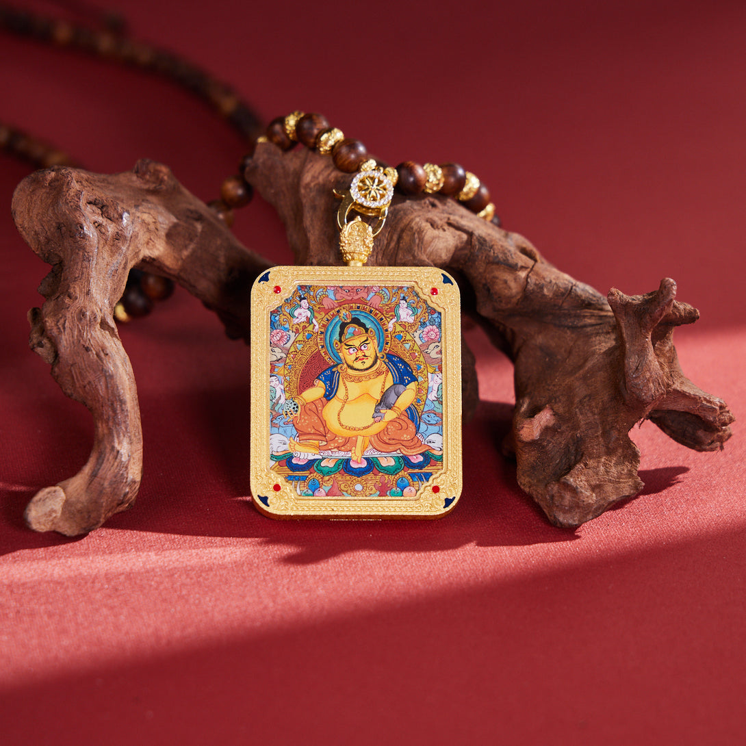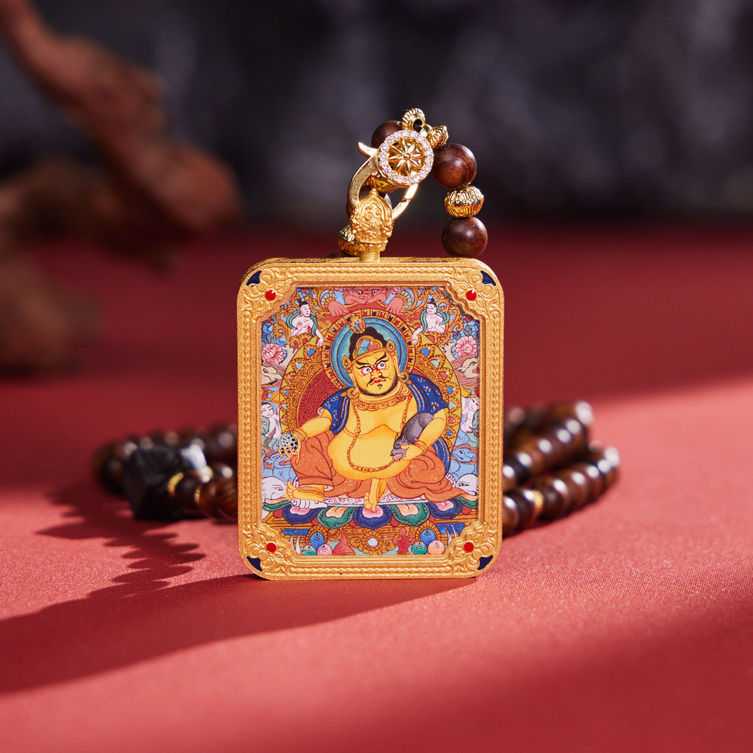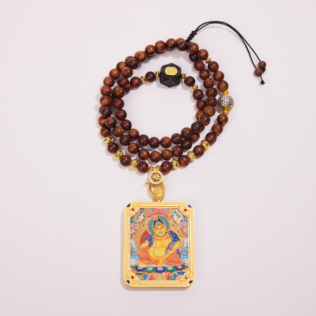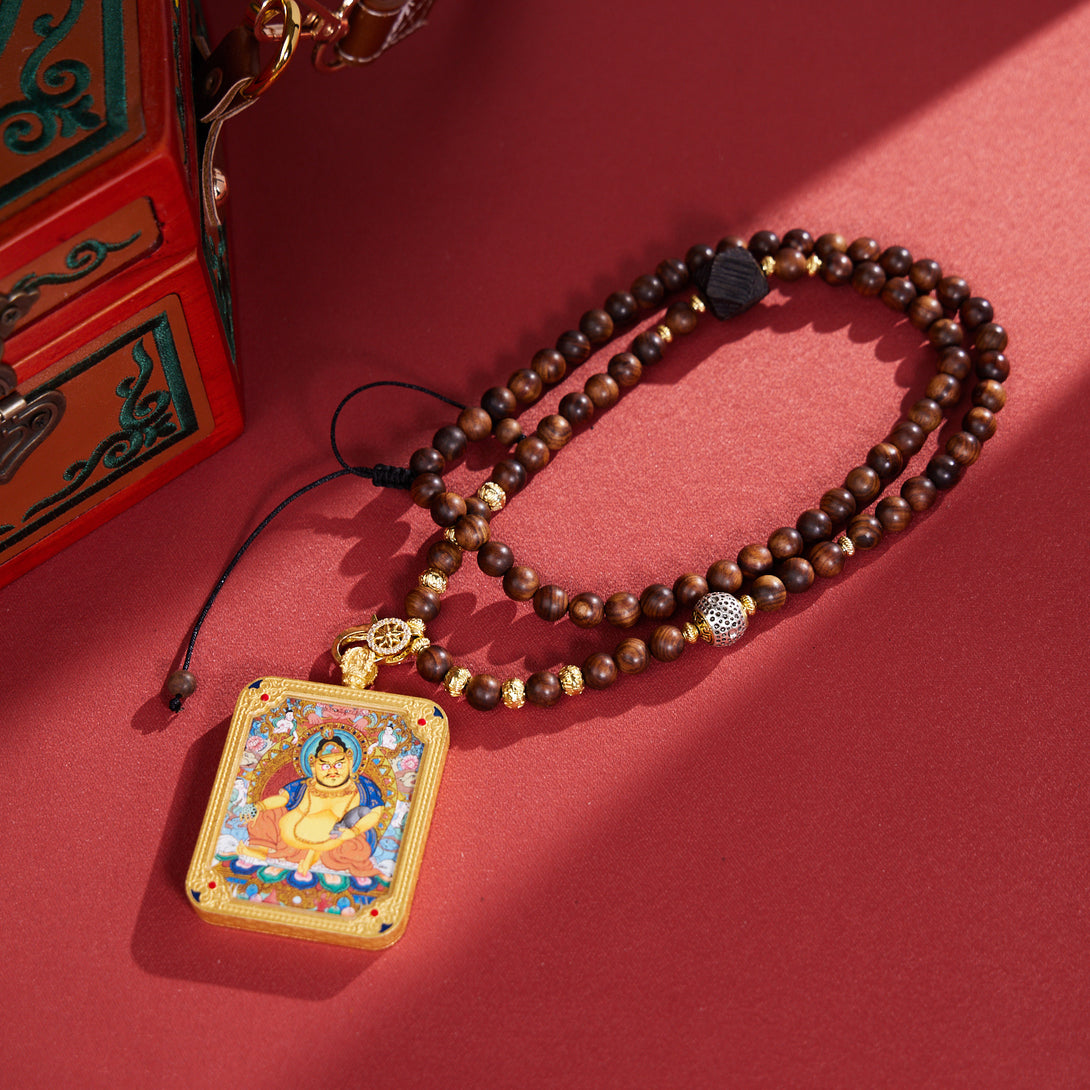 The chain features a hand-carved Yellow Jambhala medallion, typically depicting:
