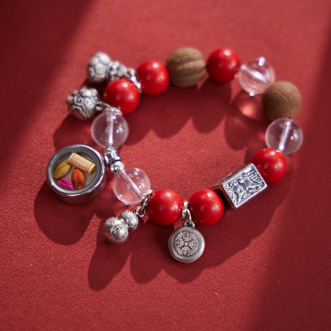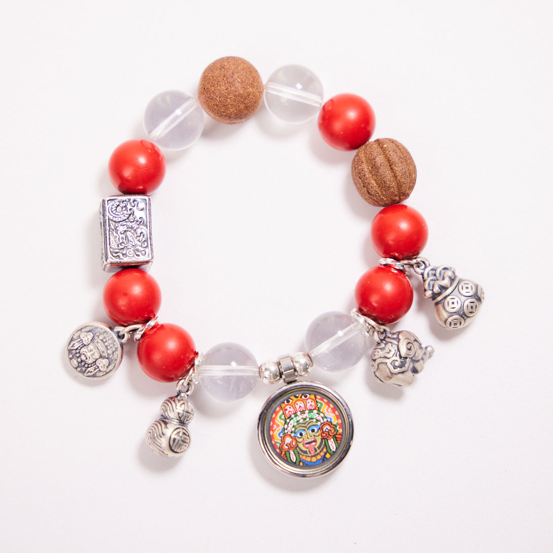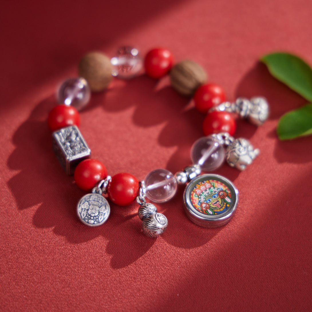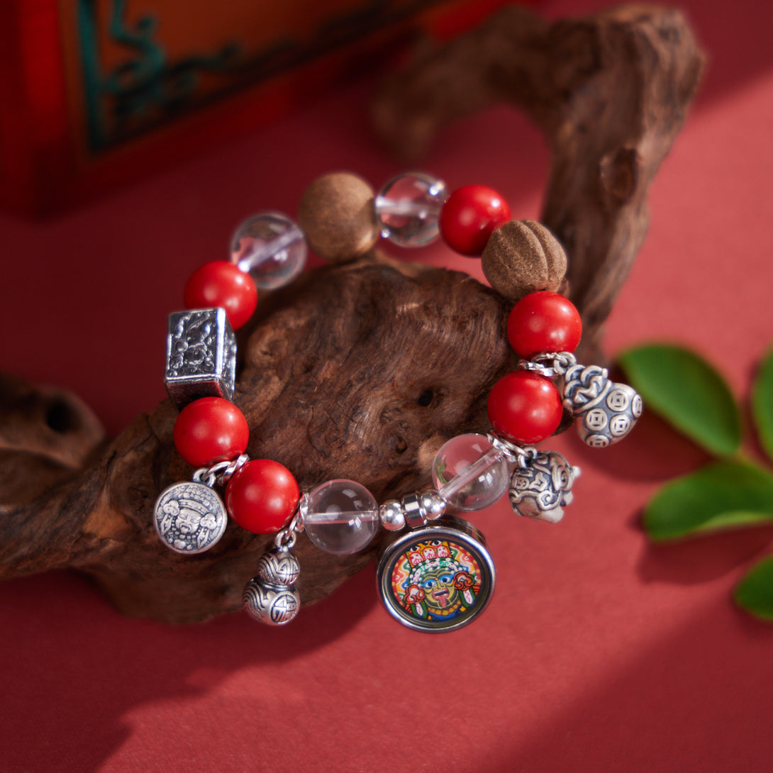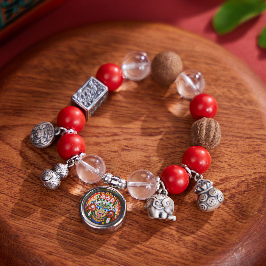 Zakiram with Clear Quartz & Cinnabar Thangka Bracelet