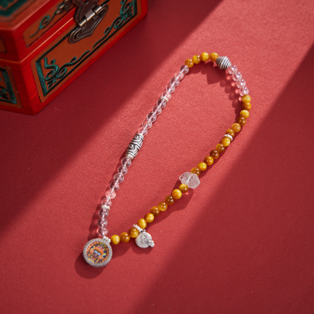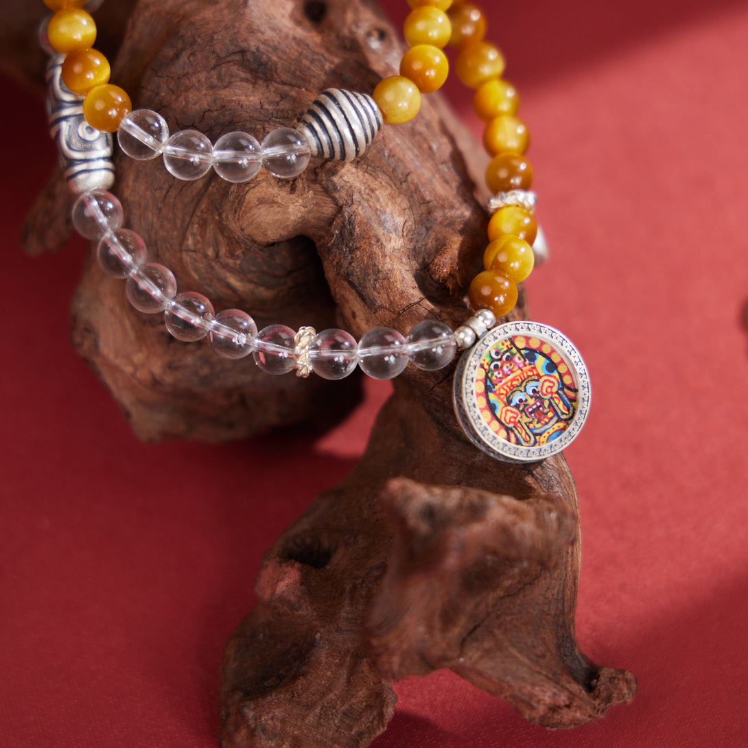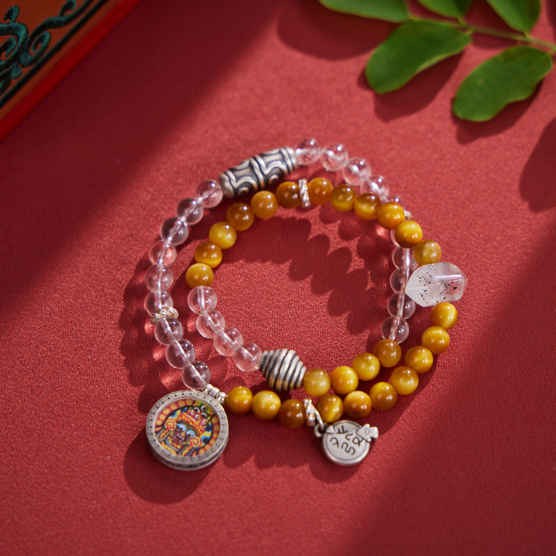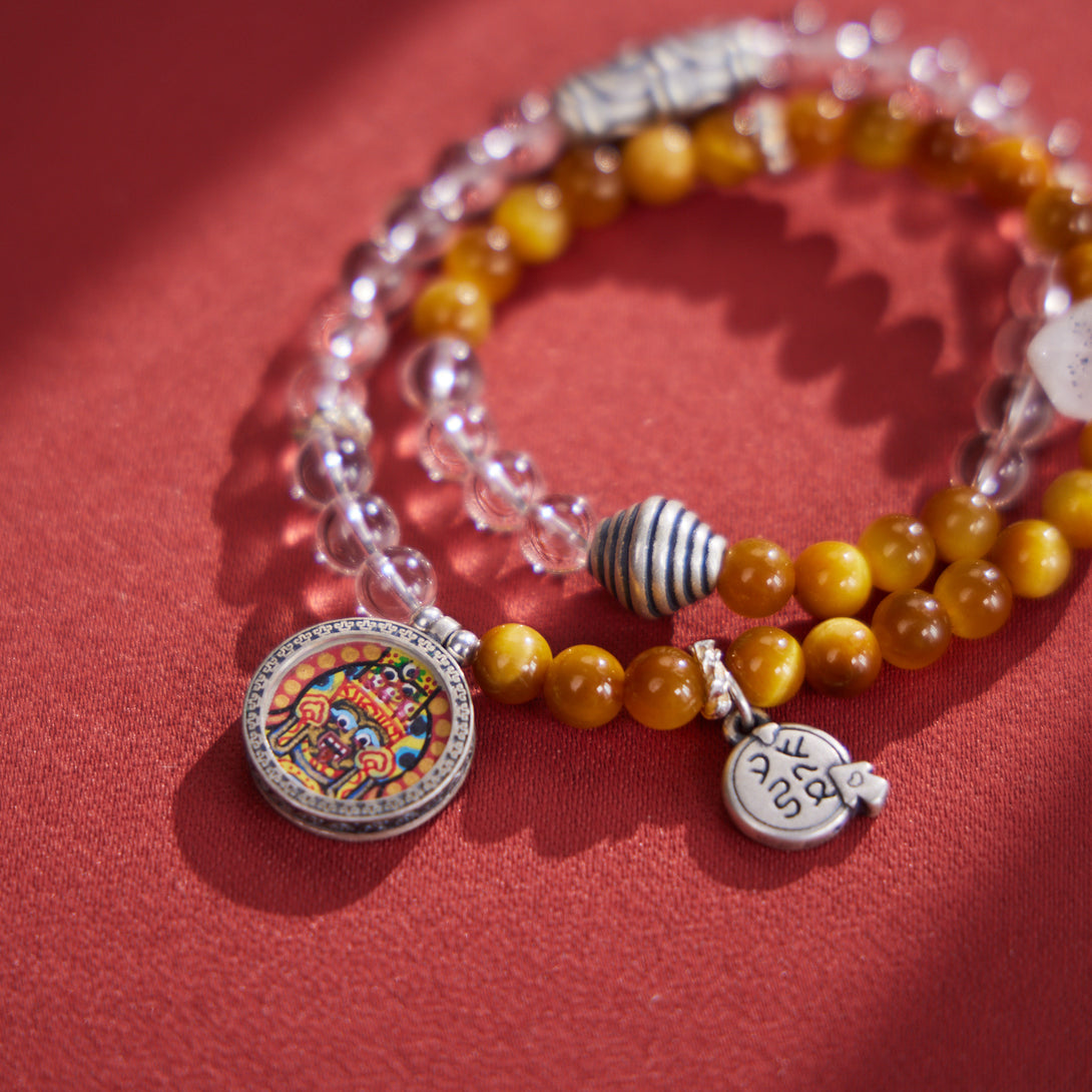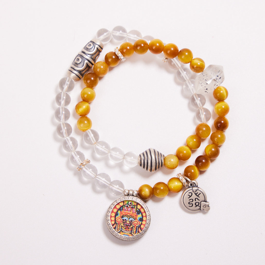 Zakiram with Tiger's Eye & White Quartz Thangka Bracelet