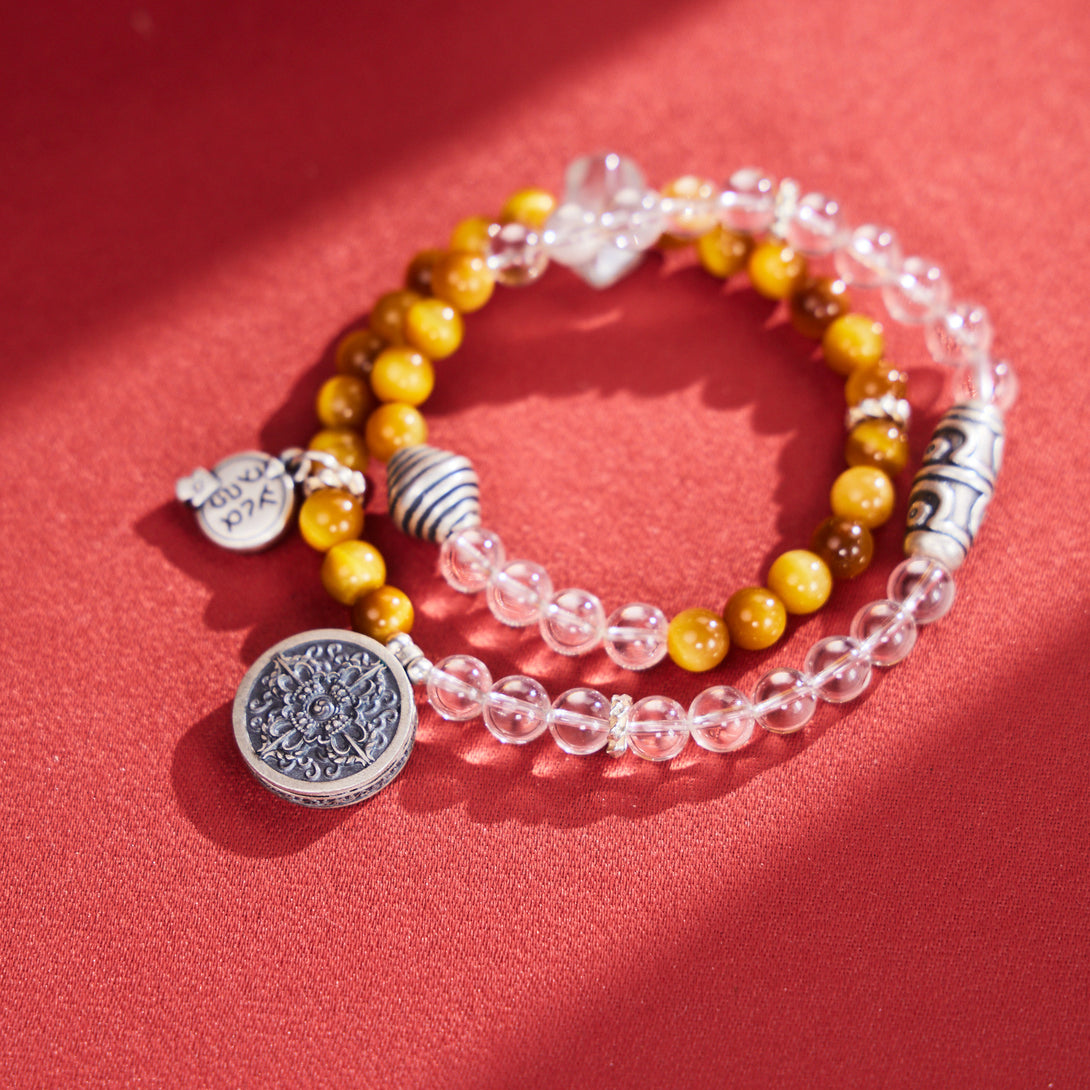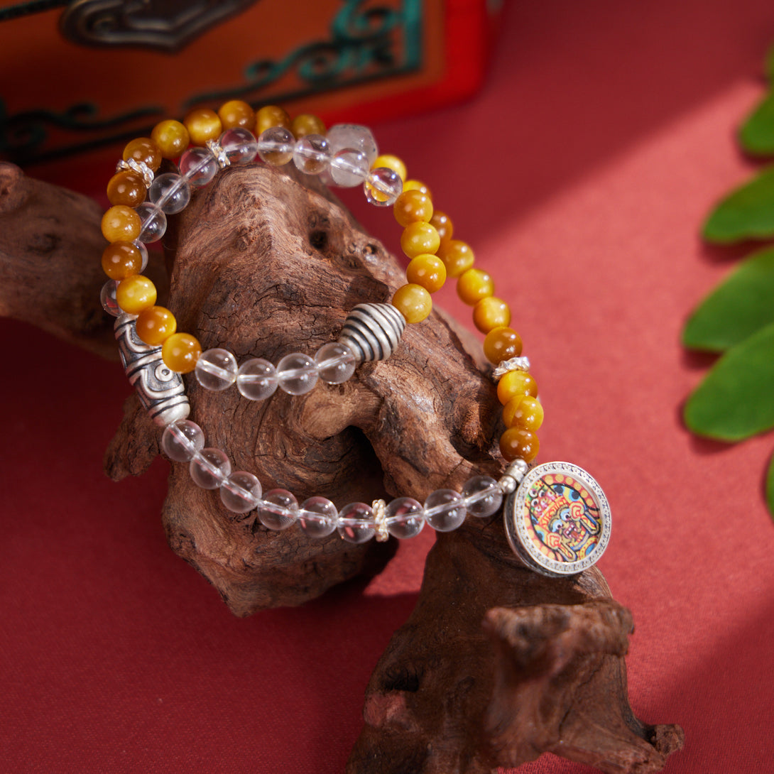 Tiger's Eye White Crystal Zakilam Double Loop Blessing Bracelet