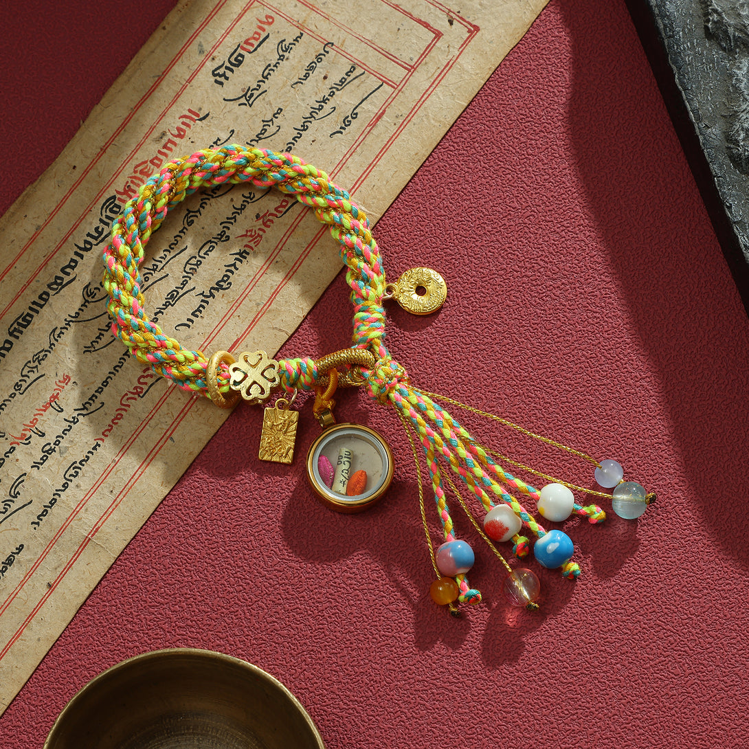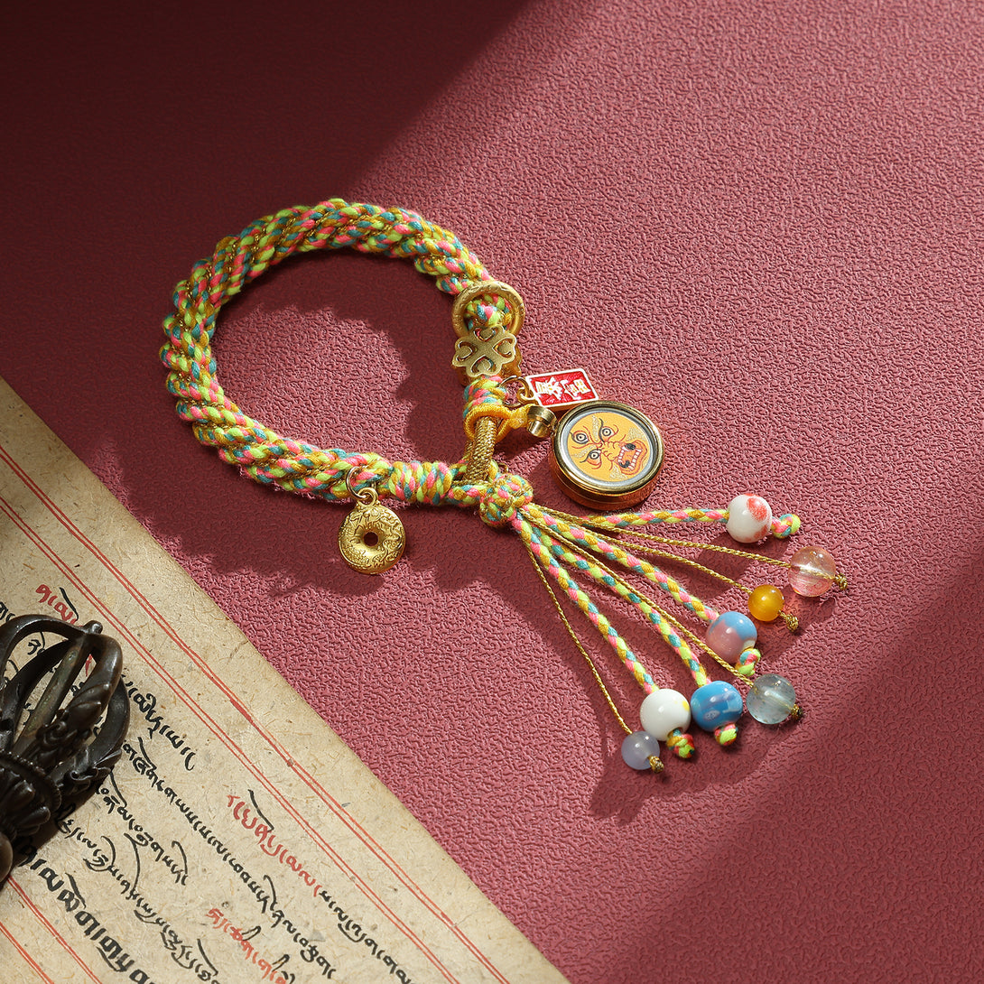 Zashi Lhamo Fortune Thangka Bracelet - Yellow Cord